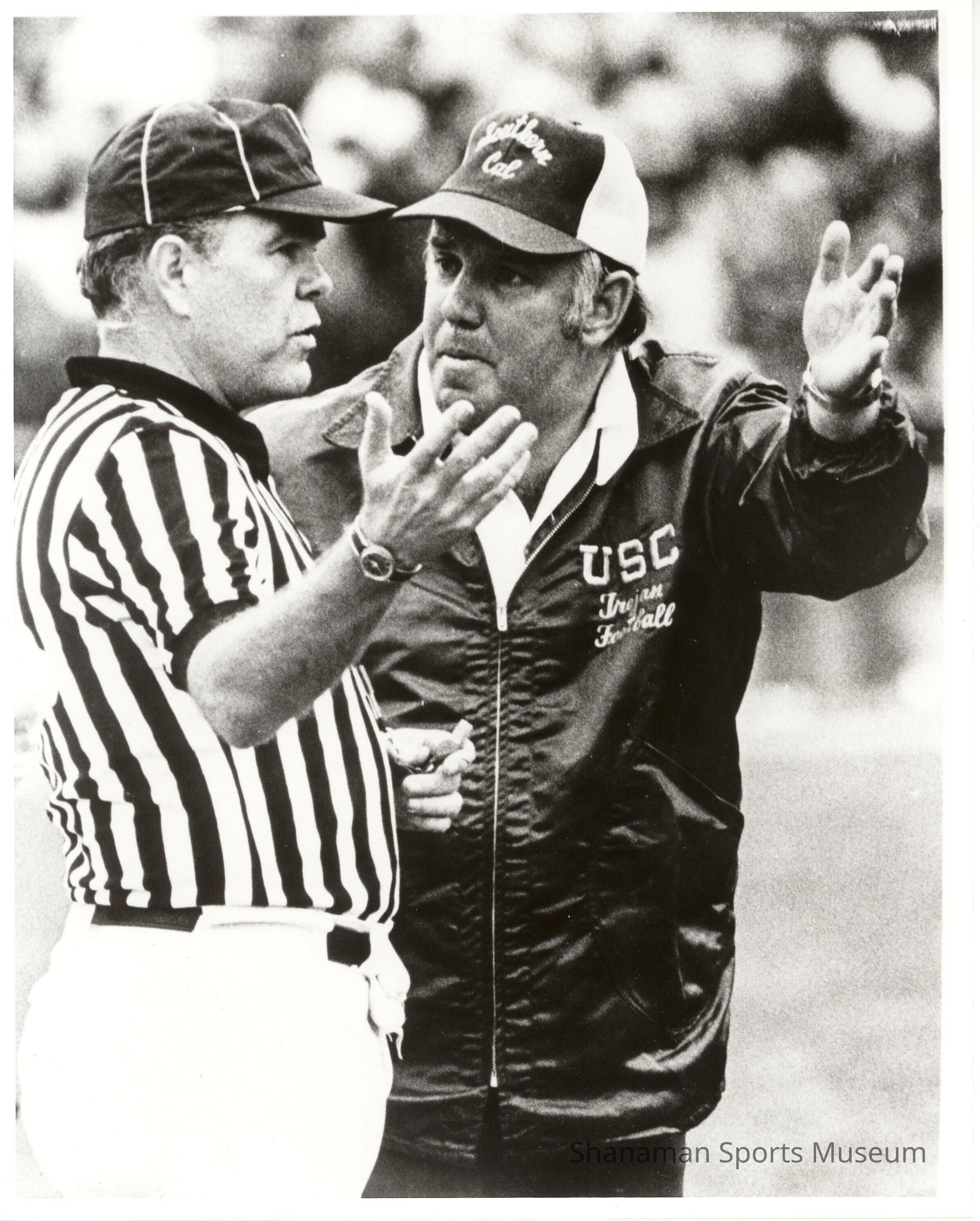 USC football coach John Robinson tries to make a point with official Ray Highsmith of Tacoma. Highsmith was the head linesman in USC’s 42-3 victory over Ohio State on Sept. 23, 1989 at the Los Angeles Memorial Coliseum.