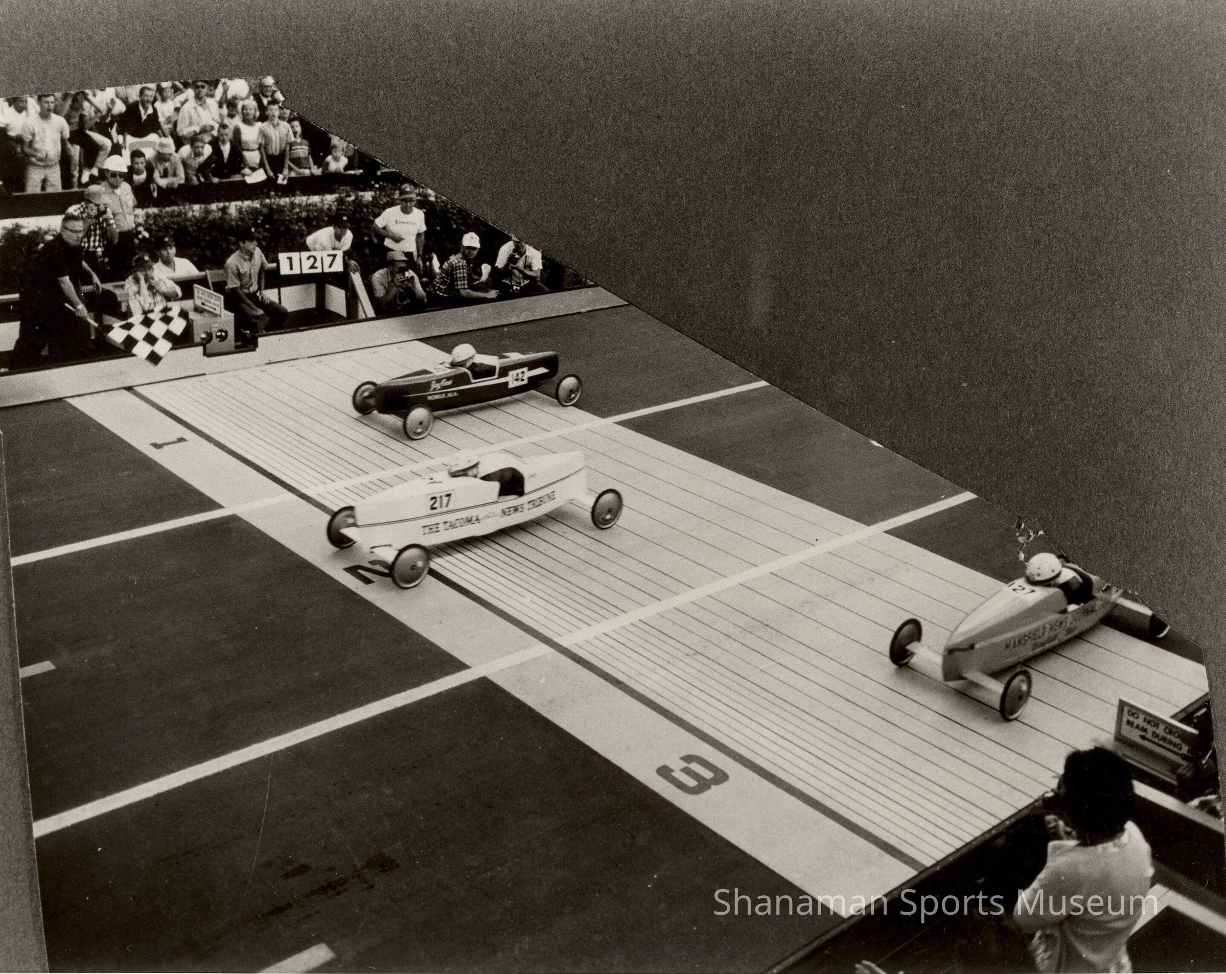 As he take the checker flag at the finish, 14-year-old Gregory Schumacher wins by less than a car length to capture the All-American Soap Box Derby in 1964. Schumacher became the first racer from Washington to win the national championship. The next year at the national championships, Tacoma's Donald Campbell placed fourth and then in 1966 David Krussow of Tacoma won. That gave Tacoma an unprecedented string of three straight racers finishing in the top four. It would be another 50 years before a Washington resident won the championship again. One national champ was crowned each year through 1975.Lexicon