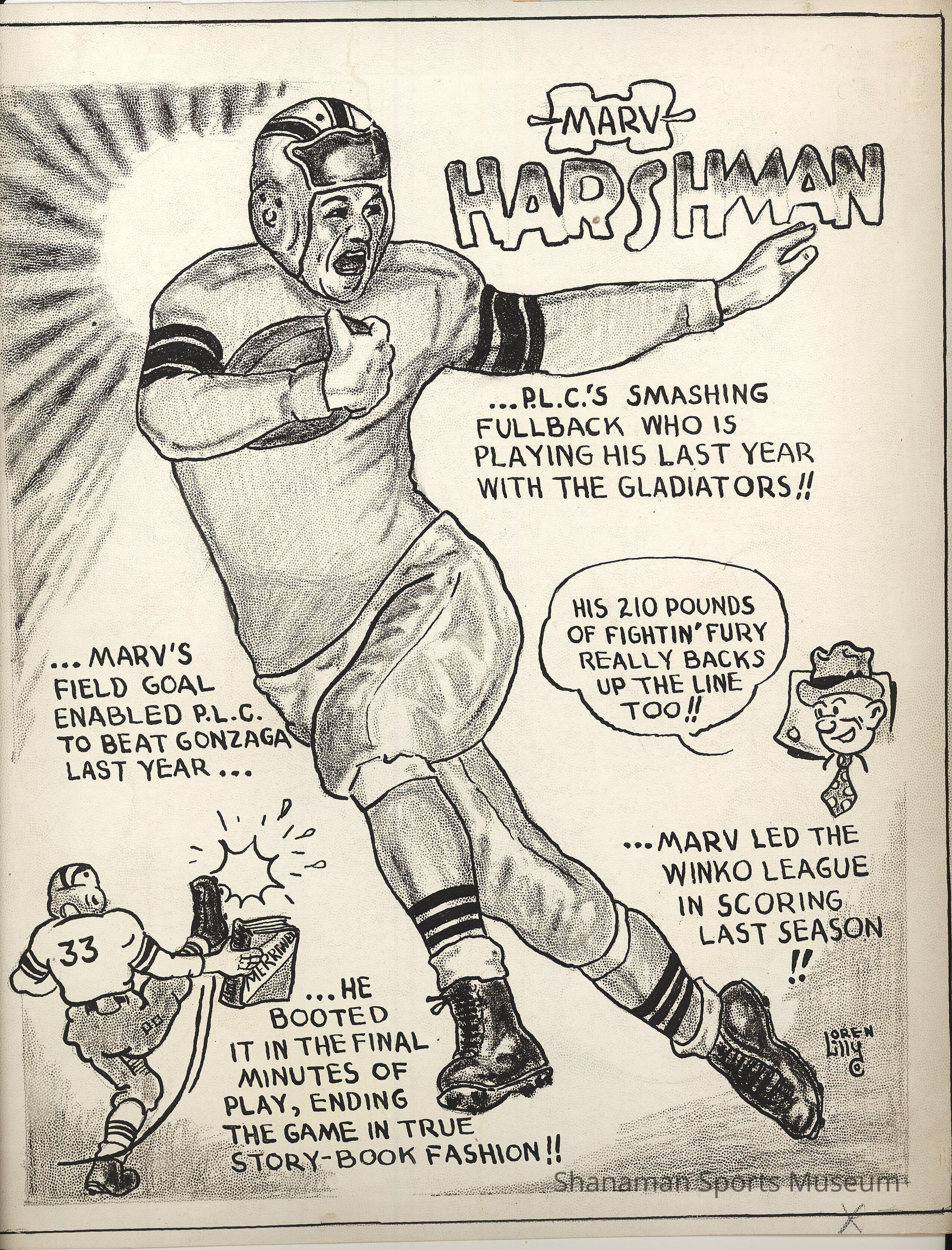 *INC* Sports charicature of Marv Harshman that appeared in the local Tacoma newspaper. Sketch was done by Loren Li
