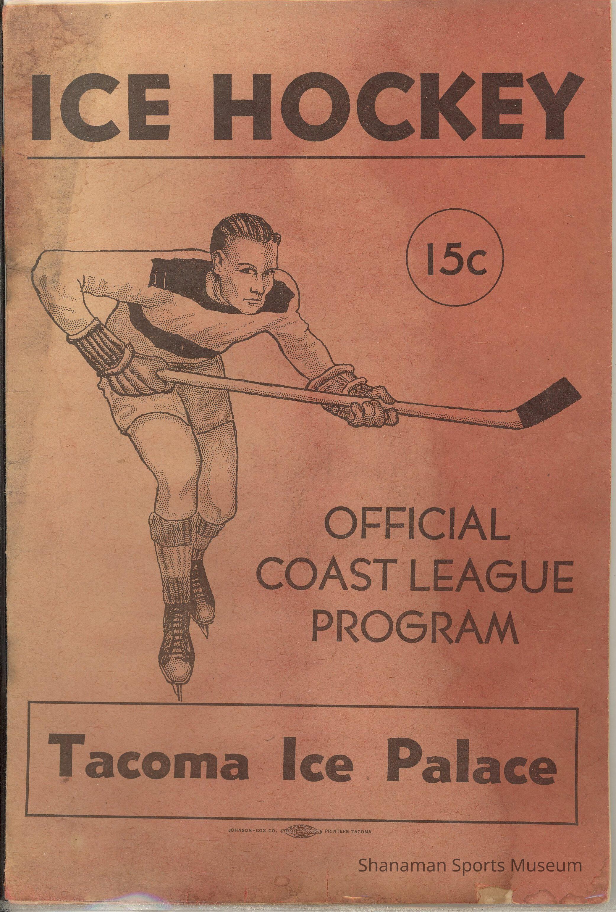 Program- The 1946-47 Tacoma Rockets hockey official program. This was the first year of the Tacoma Rockets. Red cover. "Ice Hockey, Official Coast League Program, Tacoma Ice Palace".Lexicon