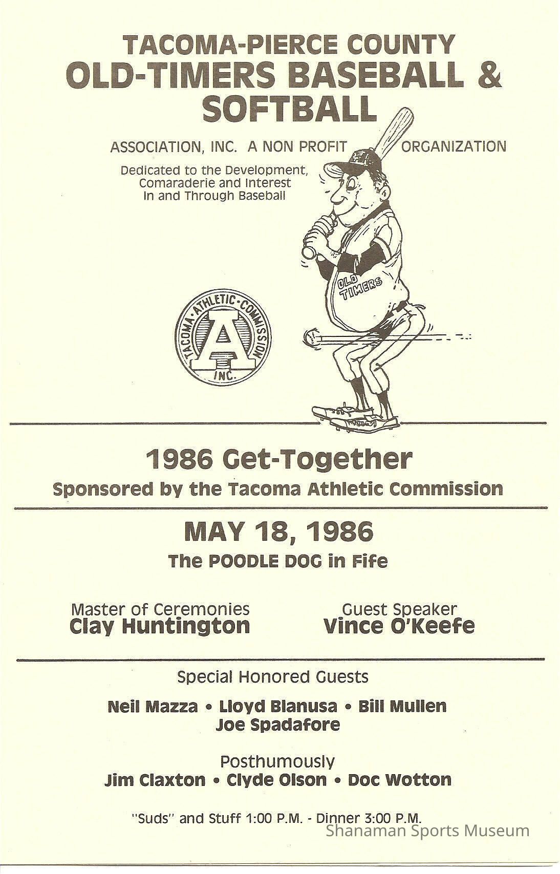 Tacoma Pierce County Old--Timers Baseball and Softball program for their "1986 Get-Together" (2 copies)