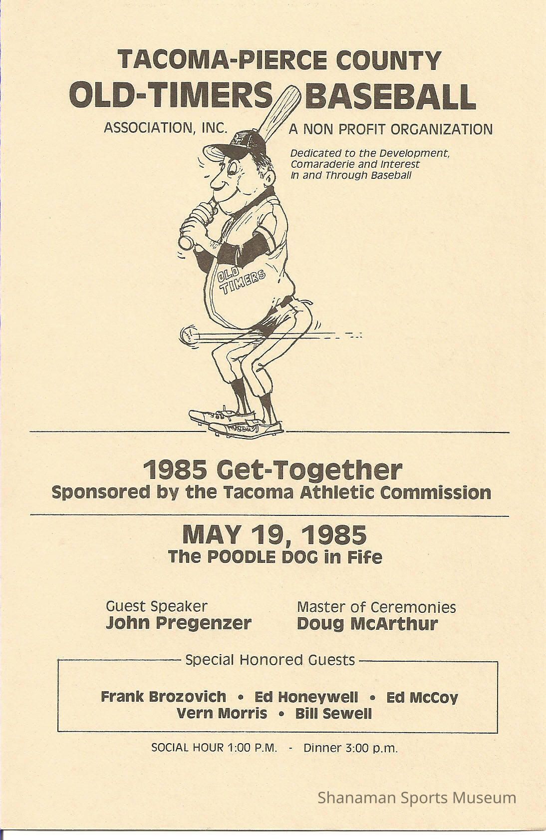 Tacoma Pierce County Old Timers Baseball and Softball program for their "1985 Get-Together" (2 copies)
