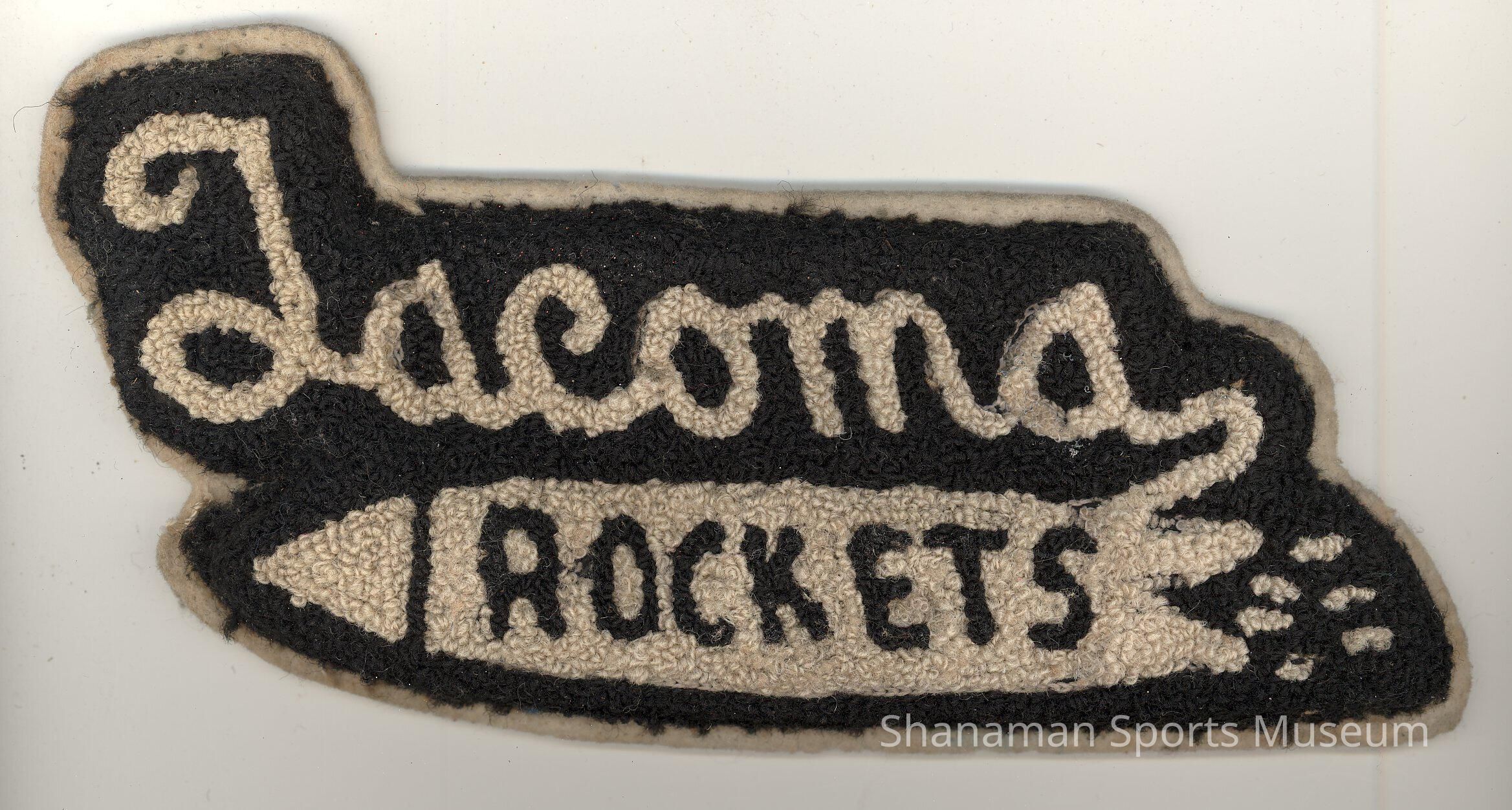 LOAN - patch for the 1947-48 Tacoma Rockets. Navy blue and white chenille name plaque worn on jackets.