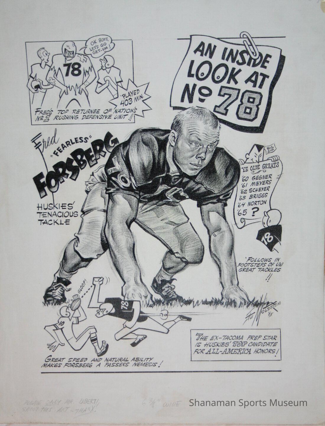 LOAN - Charicature "An inside look at No. 78" "Fred, Fearless, Forsberg" "Huskies' Tenacious Tackle"
