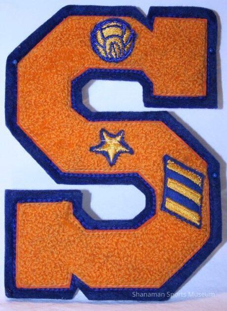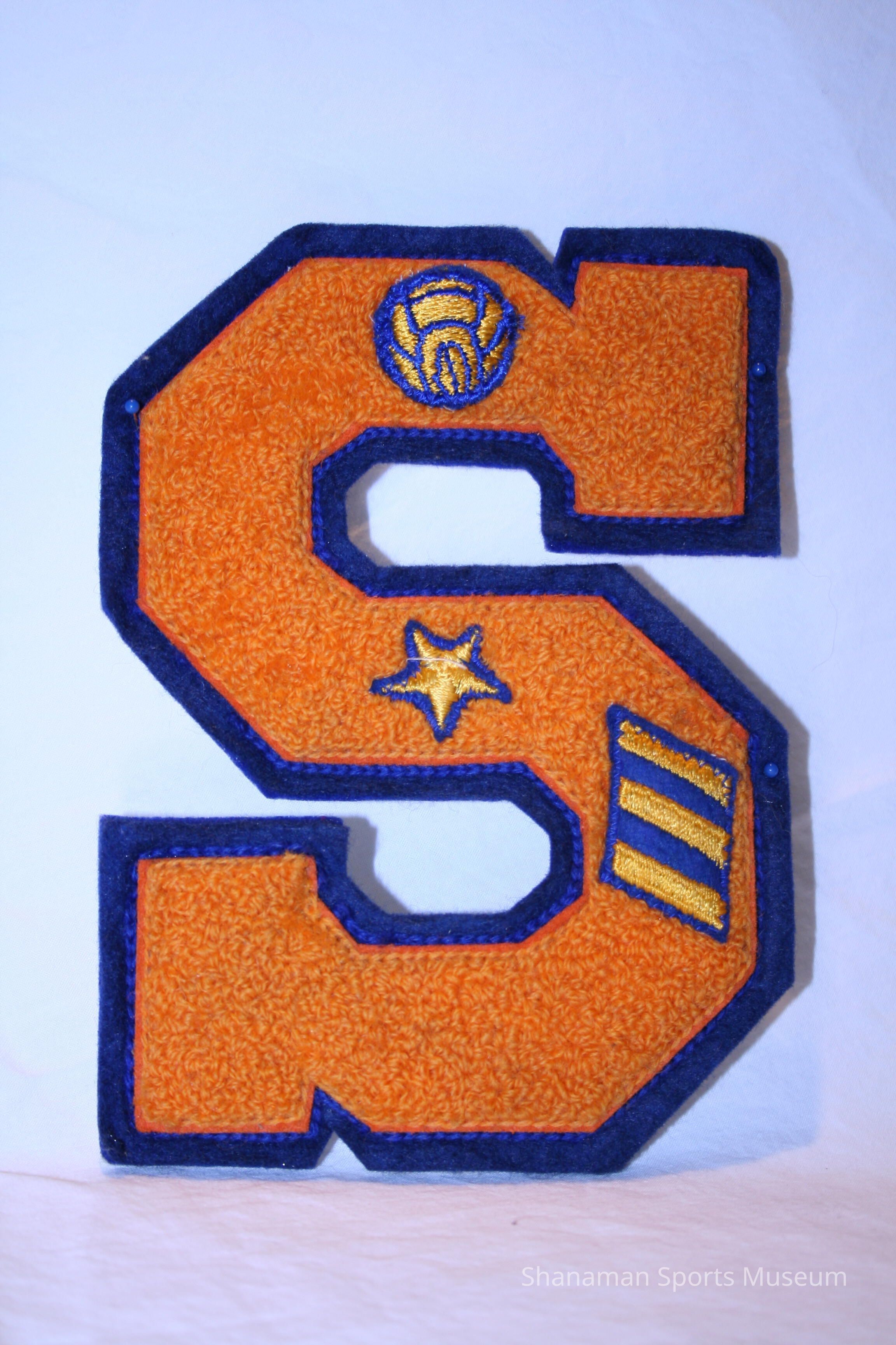 Stadium High School varsity letter - block "S" with 3 hash marks, star and soccer ball.
