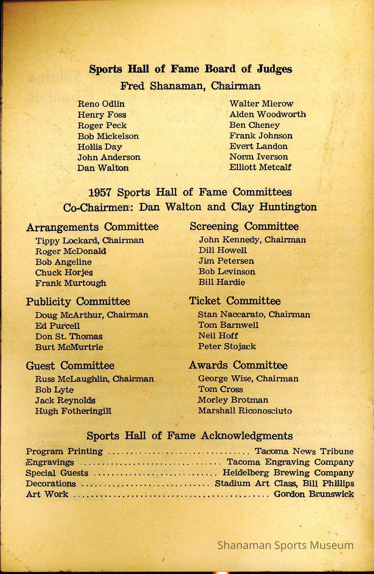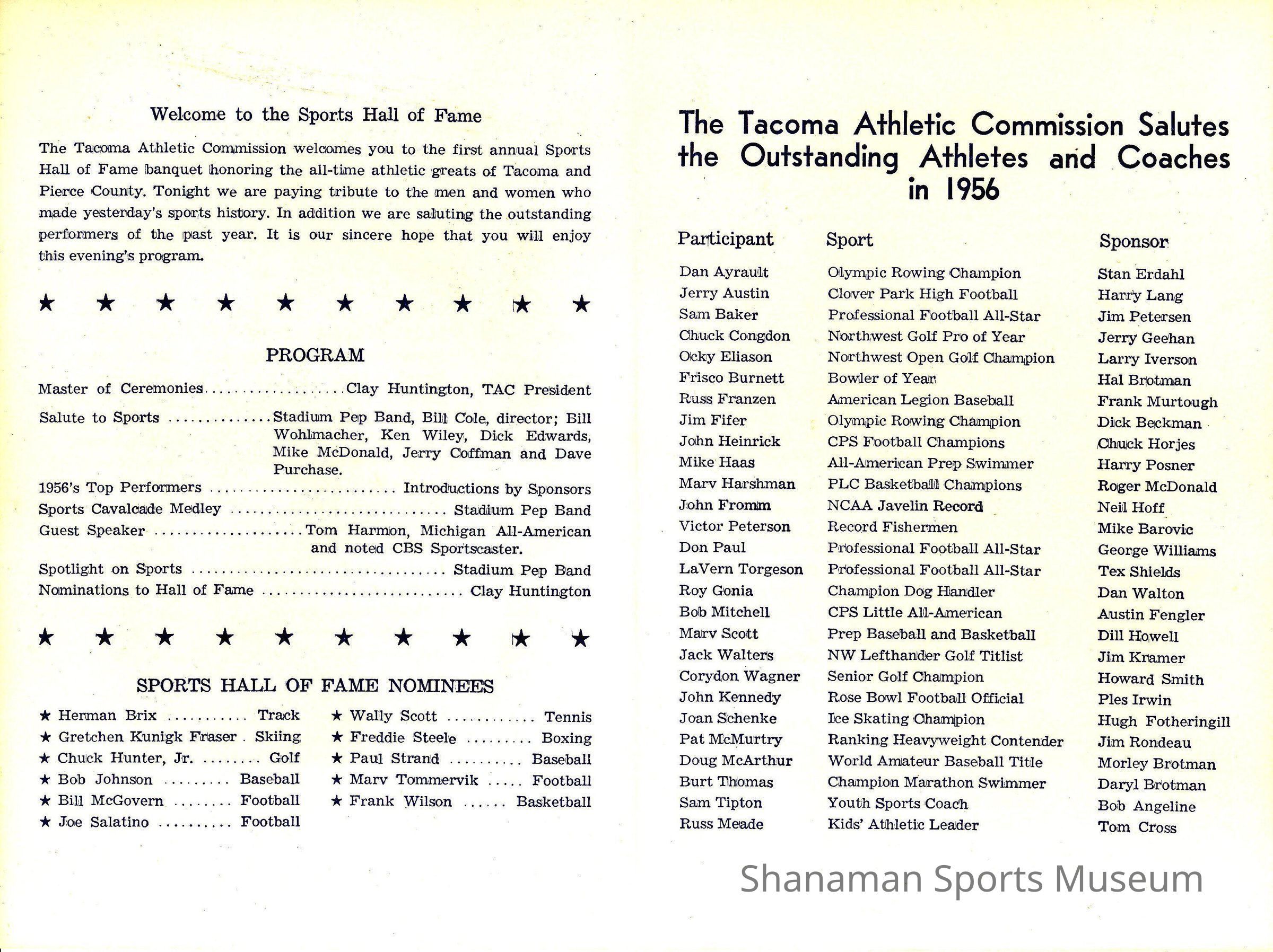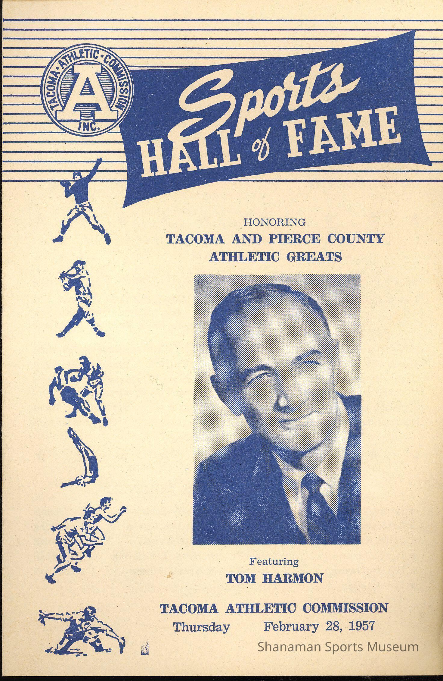 Program from the Tacoma Sports Hall of Fame, February 28, 1957 featuring guest speaker Tom Harmon.Lexicon