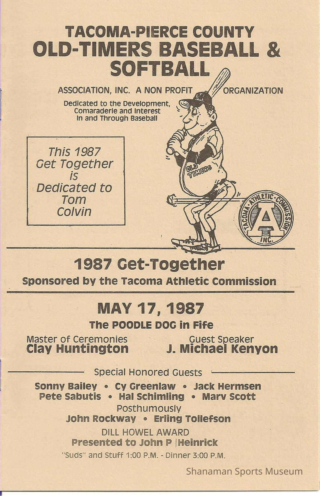 Tacoma-Pierce County Old Timers baseball & softball program - 1987 - sponsored by TAC