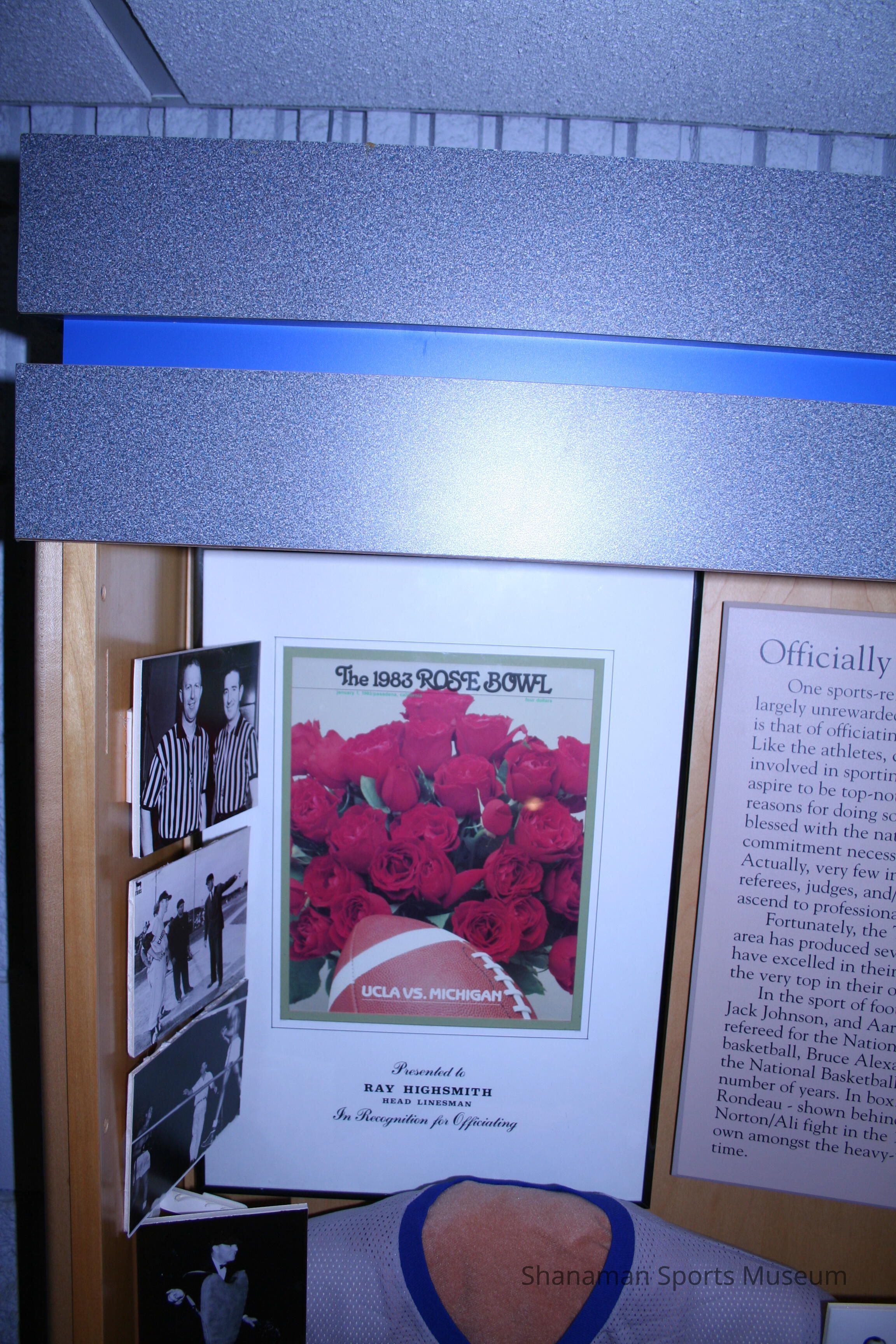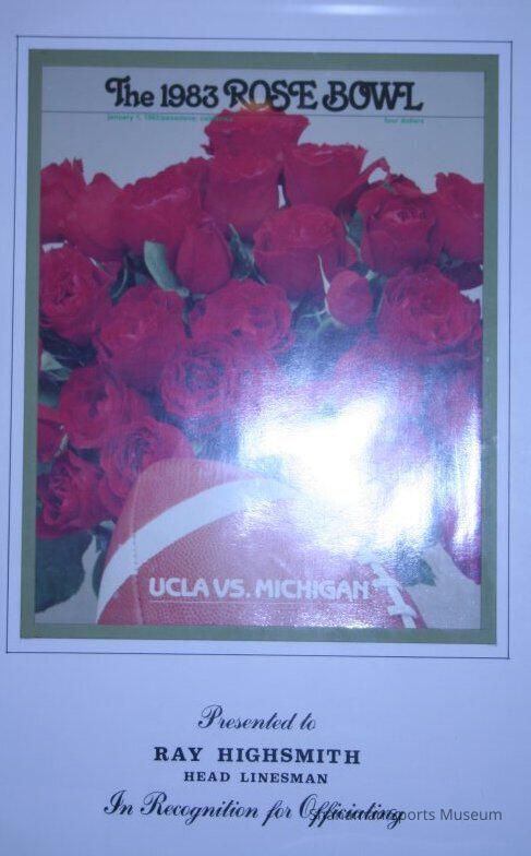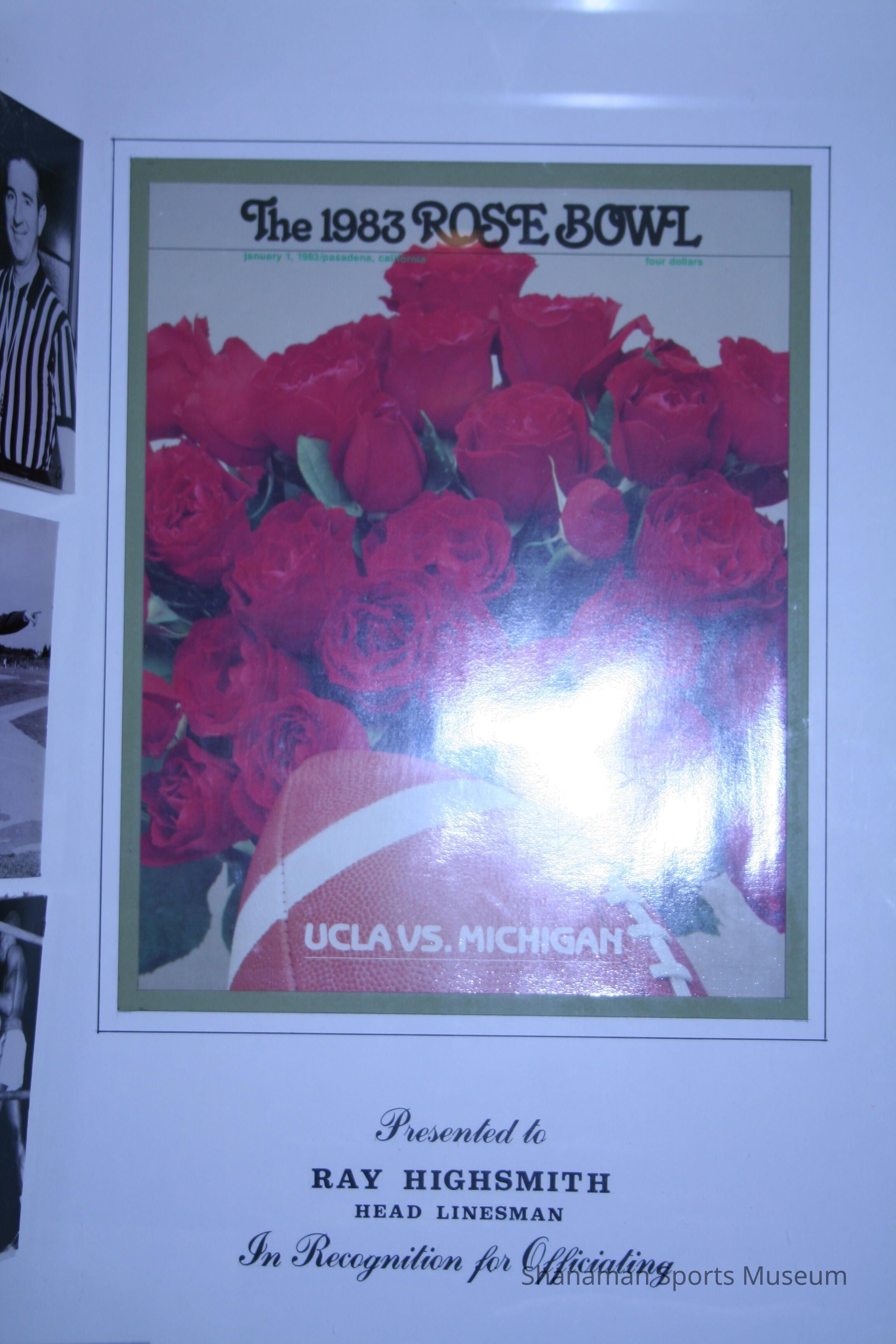 Poster, framed, from the 1983 Rose Bowl between Michigan & UCLA - presented to Ray Highsmith , the head lines