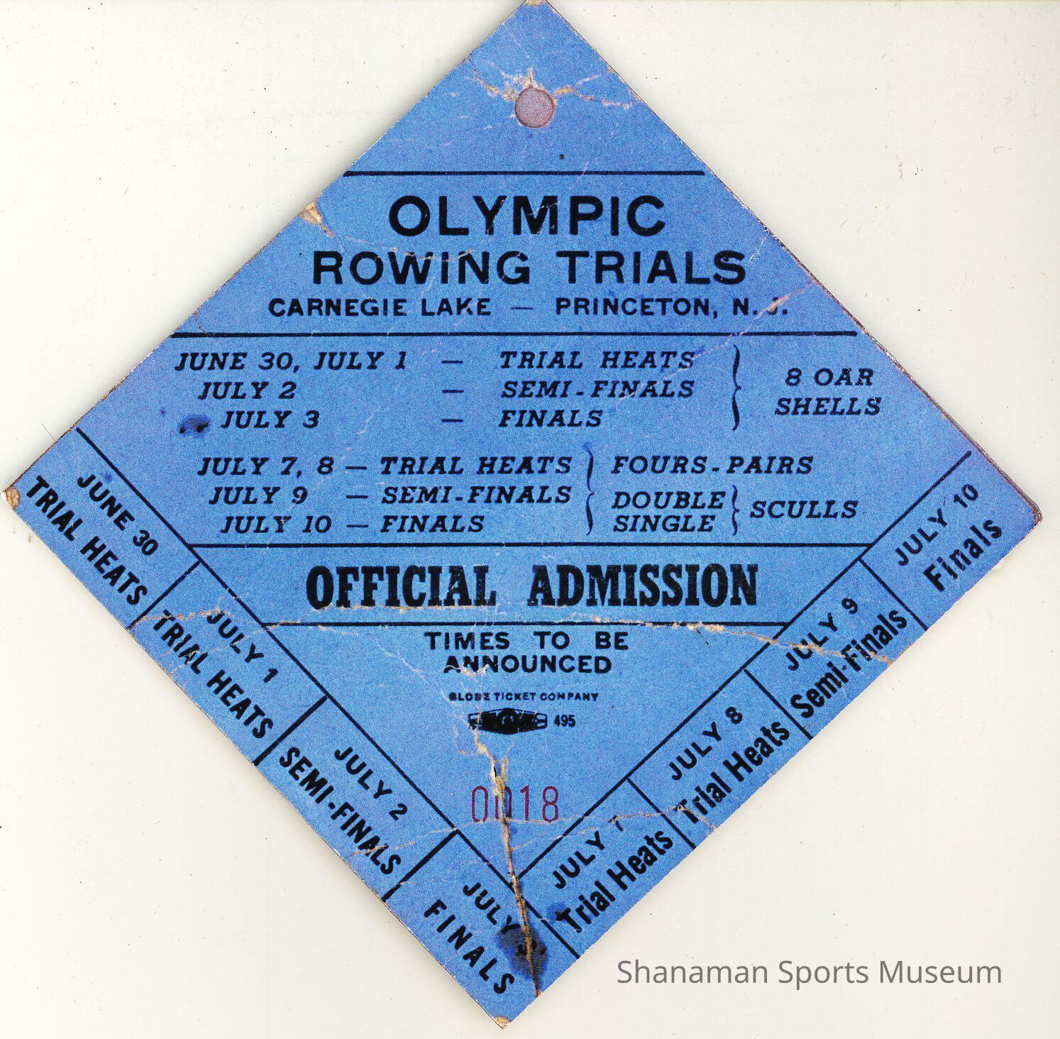 Card from Bob Martins 1948 Olympic rowing trials\, blue - on loan