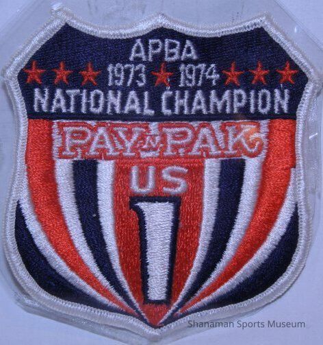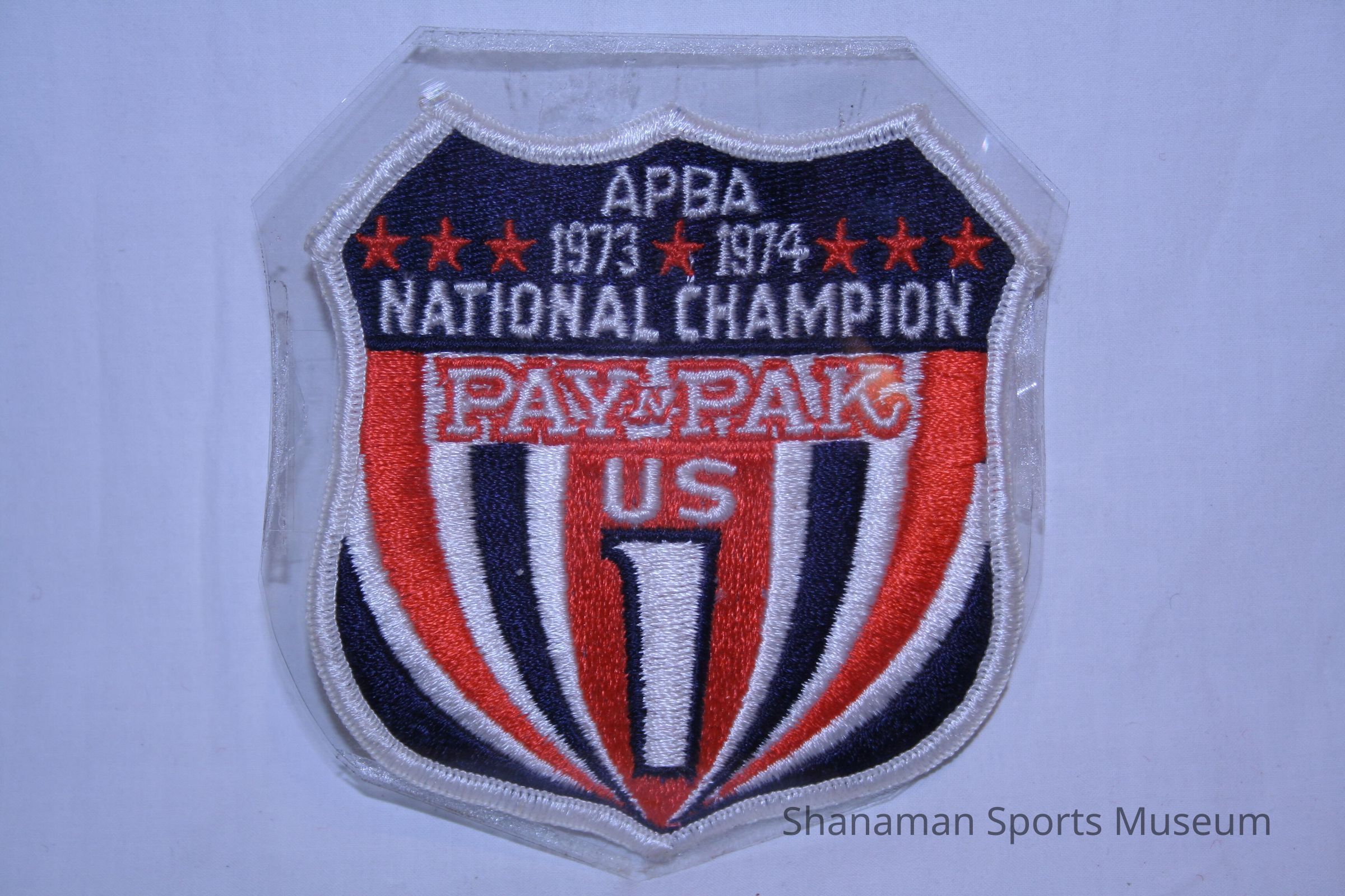 Patch depicting the 1973-74 national championship won by the Miss Pay 'N Pac driven by George Henley