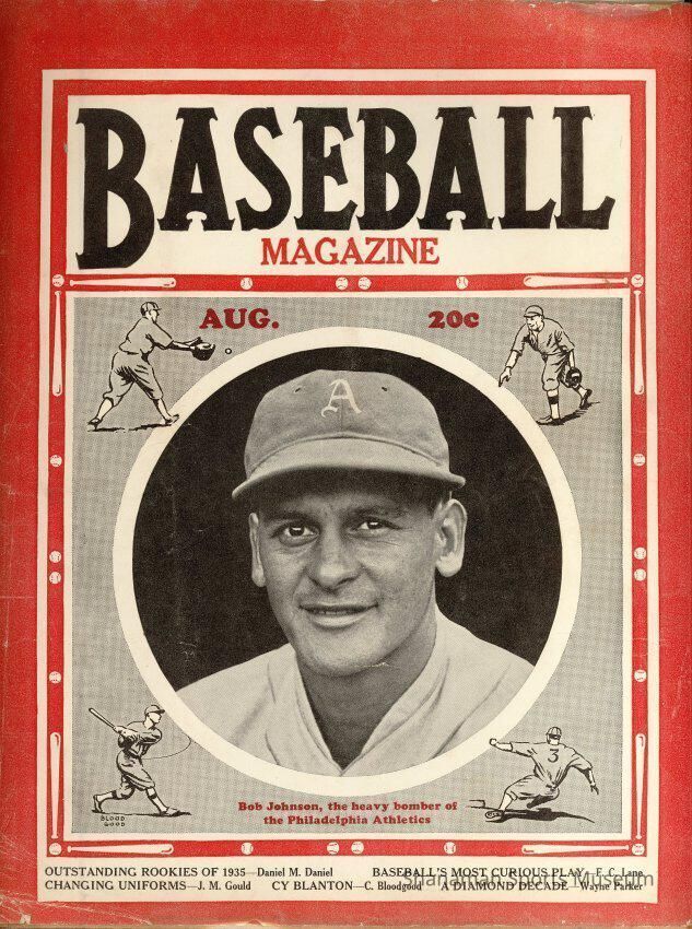 Baseball Magazine issue with Indian Bob Johnson on the front. Johnson was from Tacoma and was outfielder with Philadelphia Athletics; Aug. issue, 20 cents.