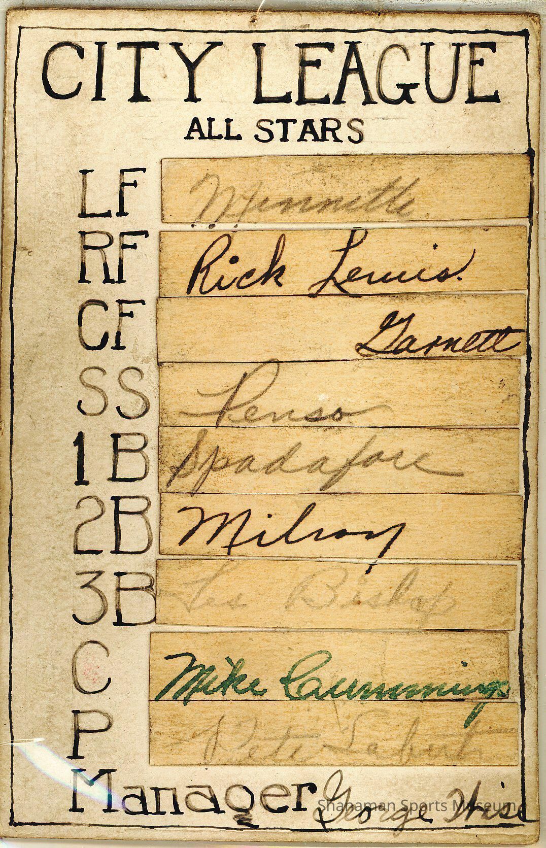 Lineup card of the City League All-stars . White card, manager is George Wise, longtime ball player in thisLexicon