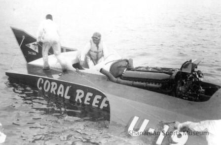 B.W original print, hydroplane Coral Reef; Driver Harry Reeves in cockpit and mechanic Ira Webster walks along boat deck to sternRelationships