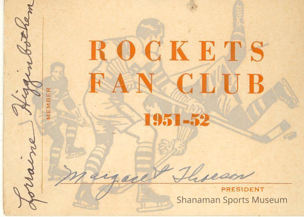Membership card to "rockets fan club" 1951-52, issued to Lorraine Higginbotham.Lexicon