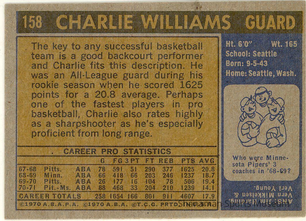 Individual trading card of Charlie Williams, basketball player for MemphisLexicon