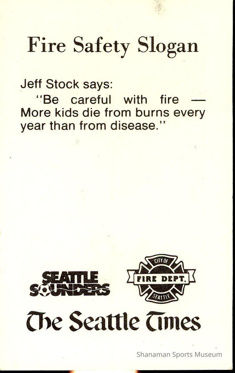 Individual trading card featuring Seattle Sounder Jeff Stock. Stock graduated from Stadium