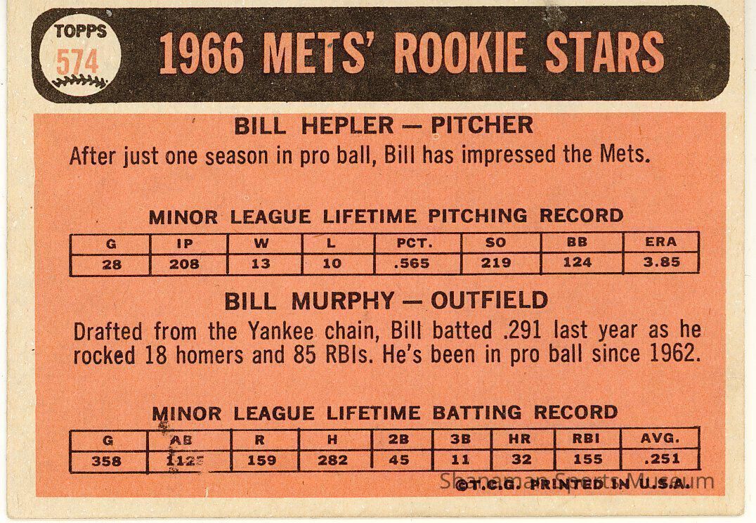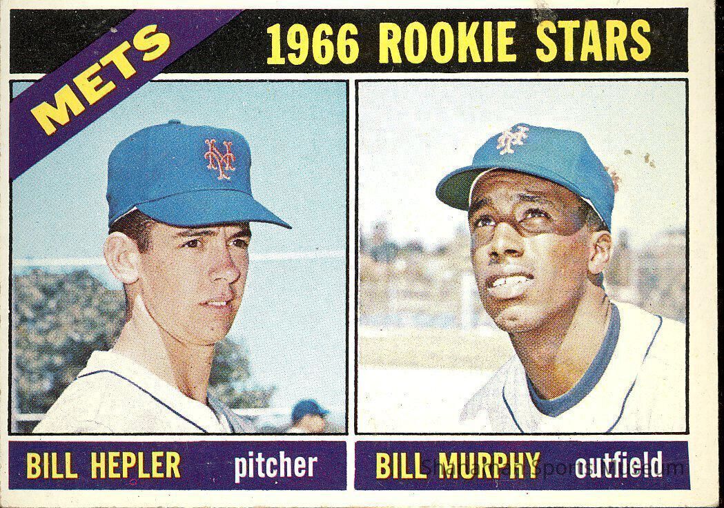 Trading card featuring "1966 Rookie Stars" Bill Hepler and Bill Murphy of the N.Y. Mets.