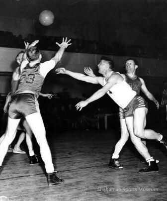 Legendary Marv Harshman (No. 4 in white shirt at right) was in the thick of things for the Tacoma Mountaineers of the Pacific Coast Professional Basketball League in the team’s one season. The Mountaineers built an overall record of 21-24 in 1947-48, but failed to gain much interest from fans. Harshman, a forward, was a multi-sport star at Pacific Lutheran before World War II, then became a basketball coaching legend at PLU, Washington State and with the Washington Huskies. The Mountaineers produced an all-league player in forward John Katica before they folded after one season.Lexicon