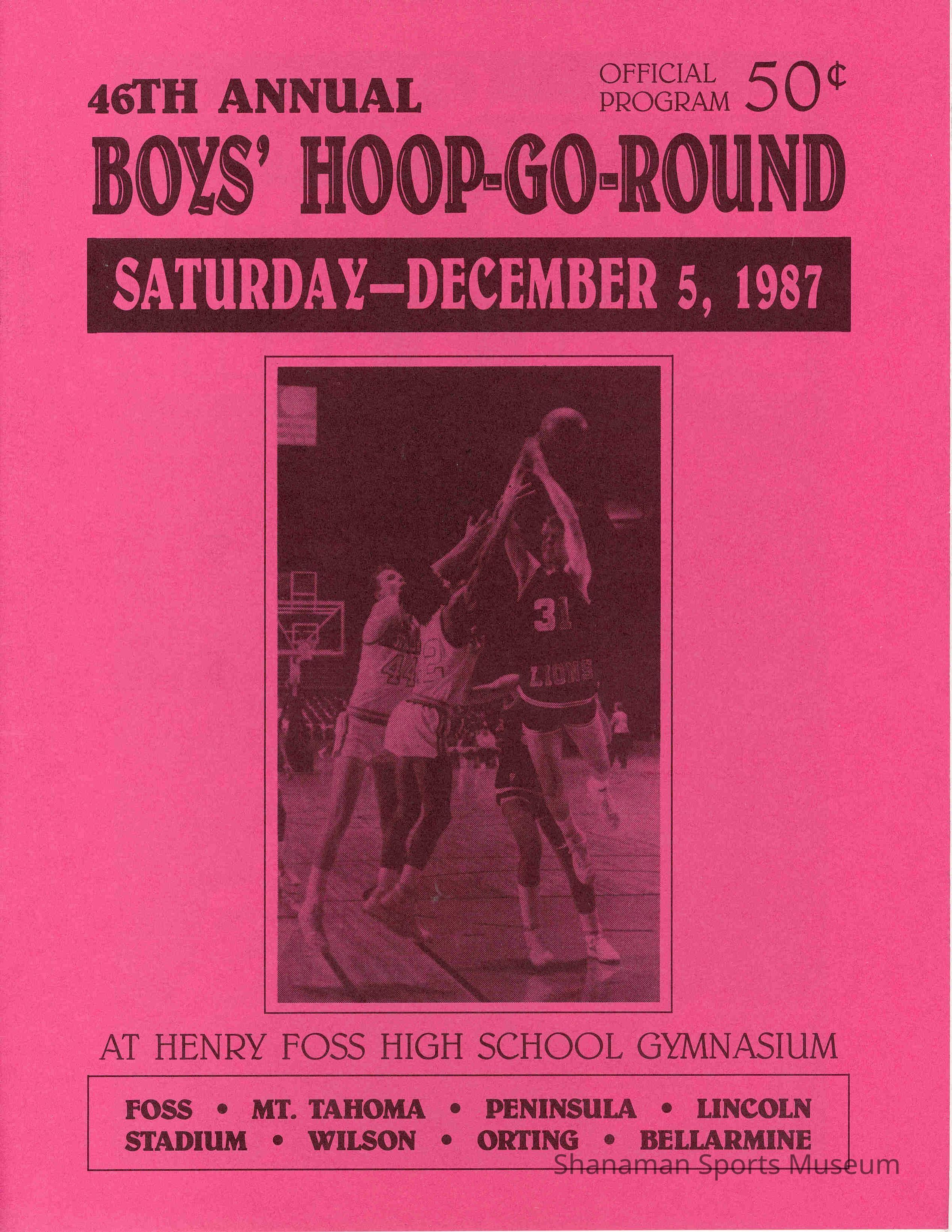 "46th Annual Boy's Hoop-Go-Round". Program held Dec 5, 1987 at Henry Foss H.S. Gym.