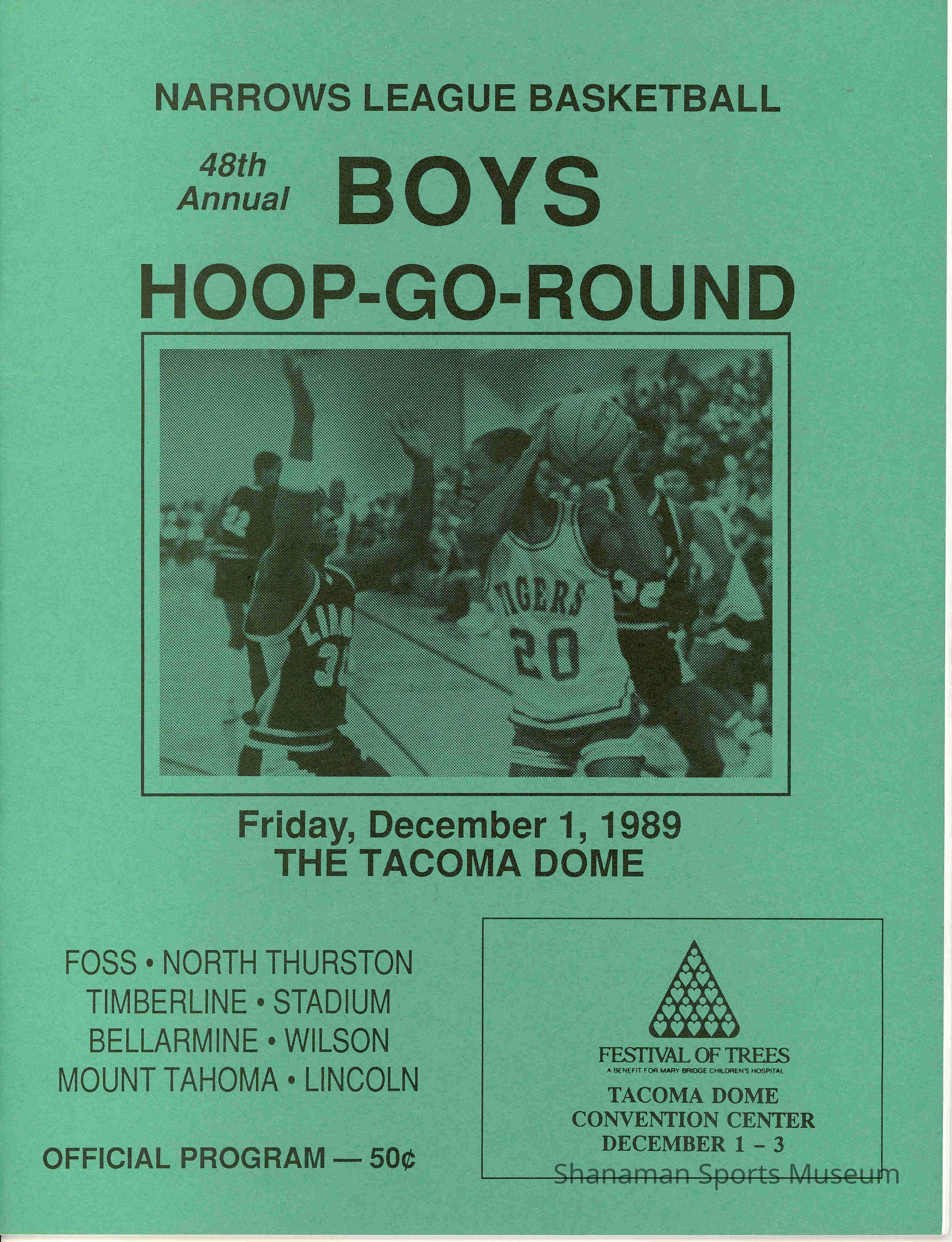 13th Annual Girls Hoop-Go-Round. Held Dec 1, 1989 at the Tacoma Dome. Green with black printing.