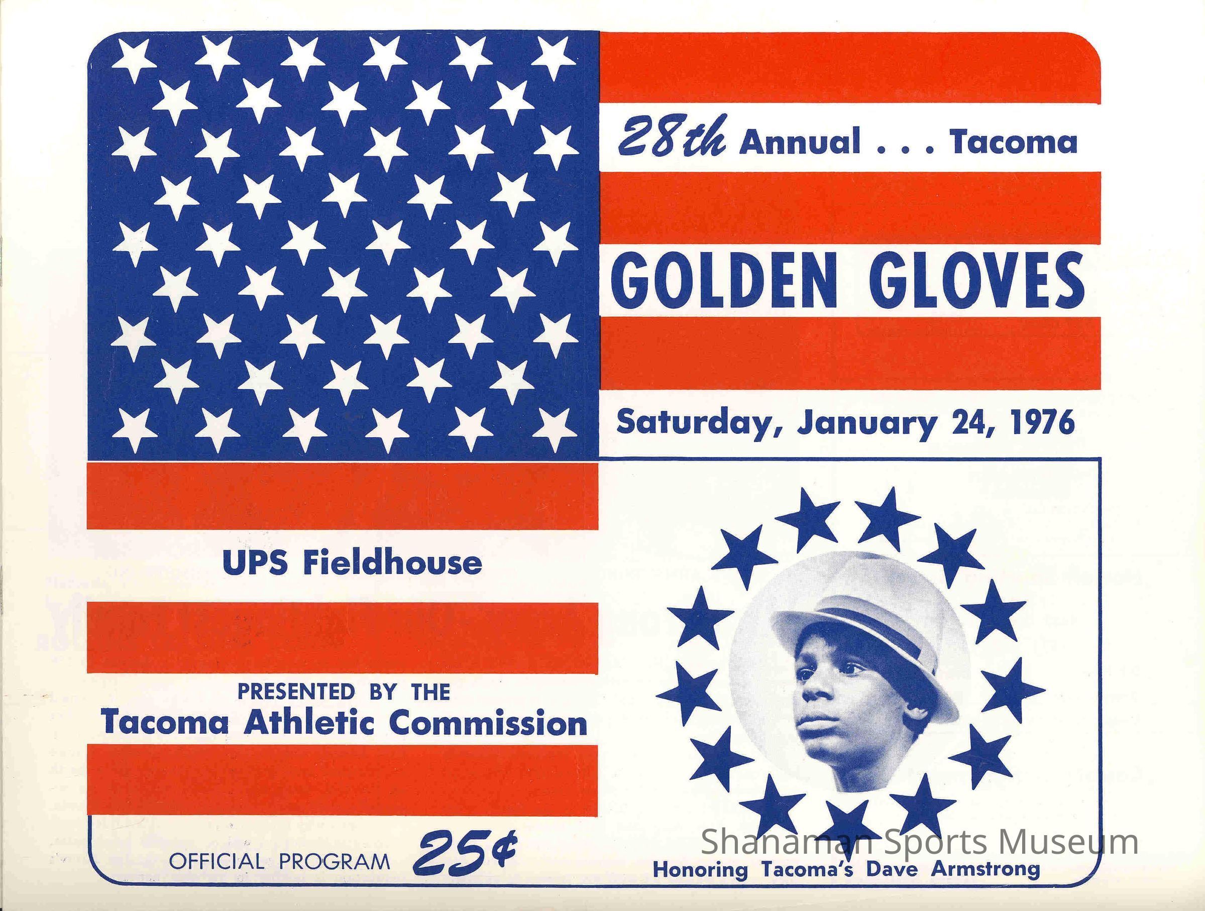 28th Annual Tacoma Golden Gloves Official program of the 1976 event. Cover features flag design for Bi-centennial. 2 copies