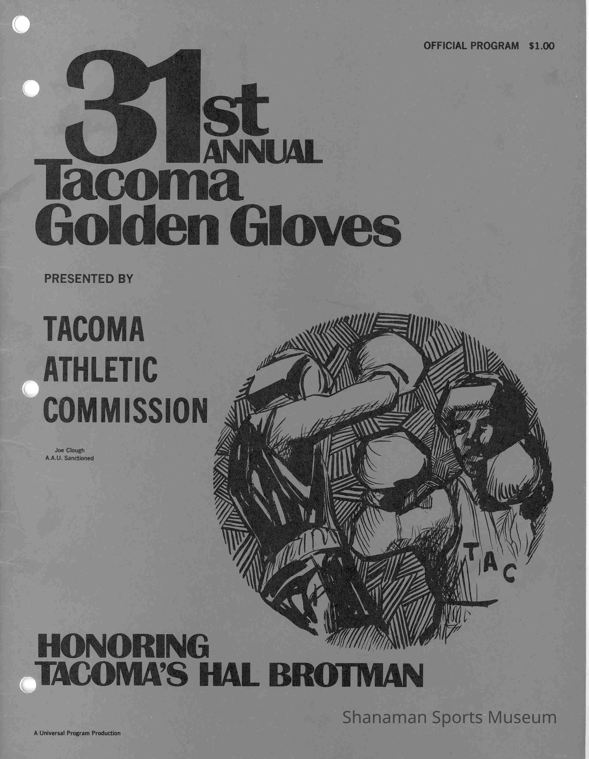 31st Annual Tacoma Golden Gloves. Official program for the 1979 event. Cover made of card stock. Honors Hal Brotman. 2 copies