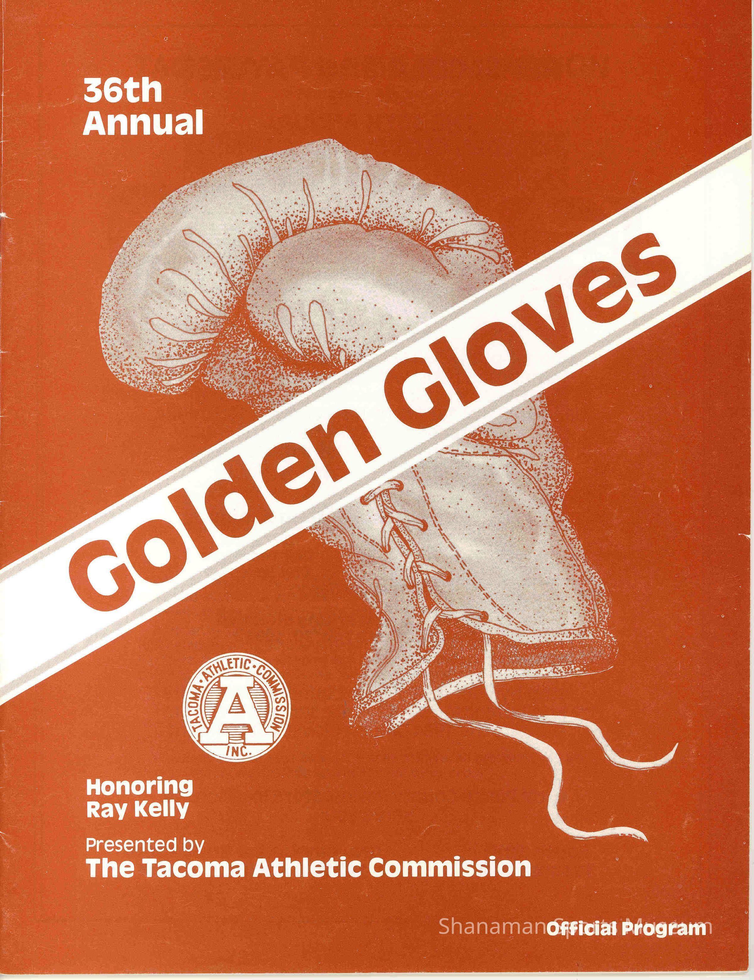 36th Annual Tacoma Golden Gloves. Official program for the 1984 competition. Cover is rust. Event honors Ray Kelly