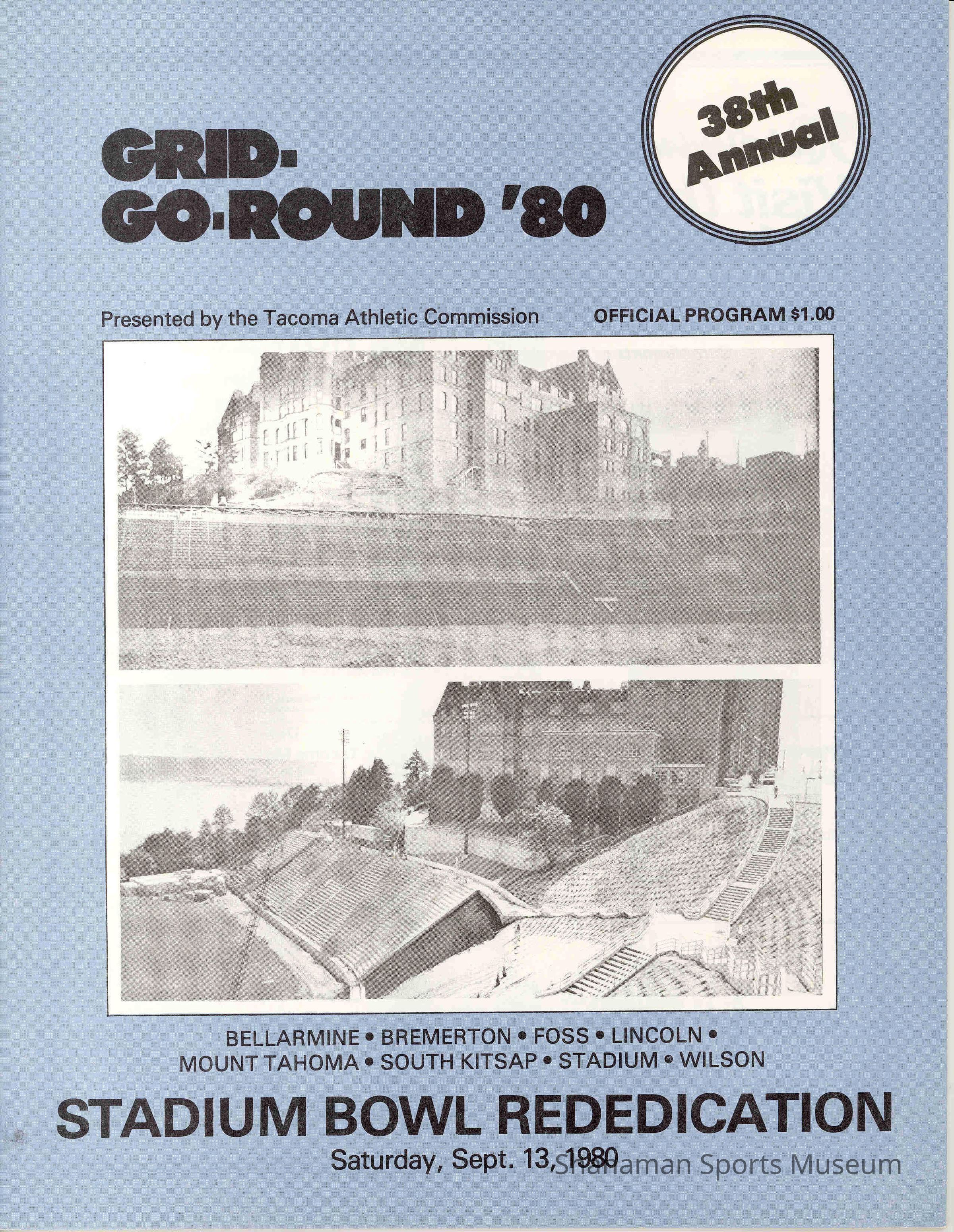 Grid-Go-Round '80 - 38th Annual. Held Sept 13, 1980 at Stadium Bowl rededication. Powder blue border with photos of Stadium. 2 copies