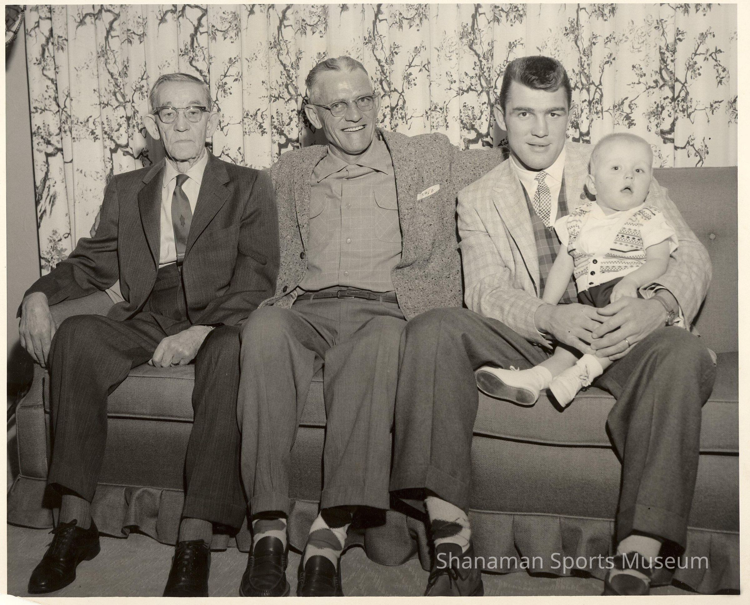 In this 1958 black-and-white photo, four generations of the McMurtry family sit. From left to right, there's Ed McMurtry, Clarence “Mac” McMurtry, Pat McMurtry and his baby boy Patrick McMurtry. Clarence was a bread salesman who loved boxing. He helped launch his son's successfully professional boxing career by giving Pat boxing gloves for Christmas when he was 6. Pat fought in the first Golden Gloves tournaments in Tacoma in 1949 and went on to have a successful professional boxing career, fighting many top-ranked boxers. He had an impressive 33-4 record as a pro fighter and 103-2 as an amateur.Lexicon