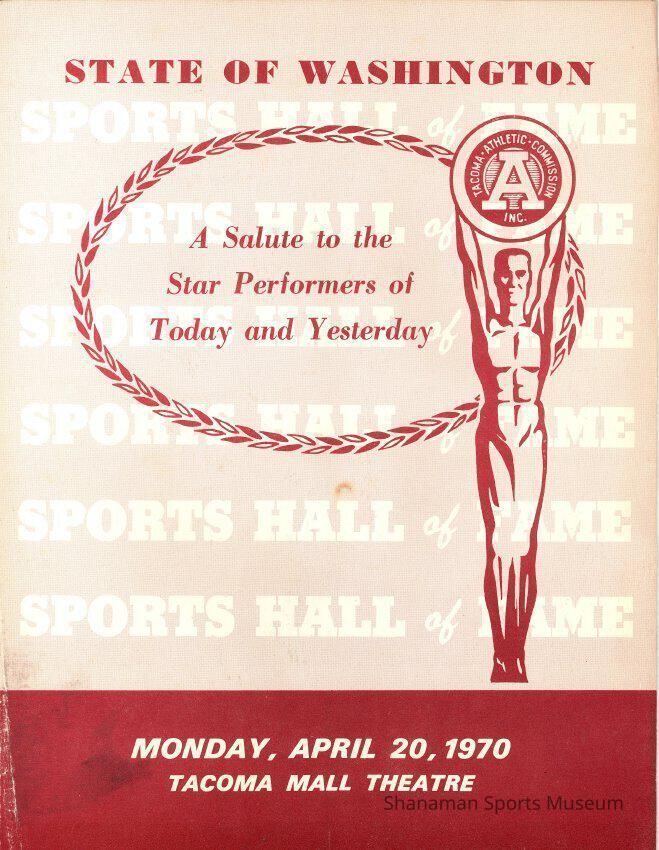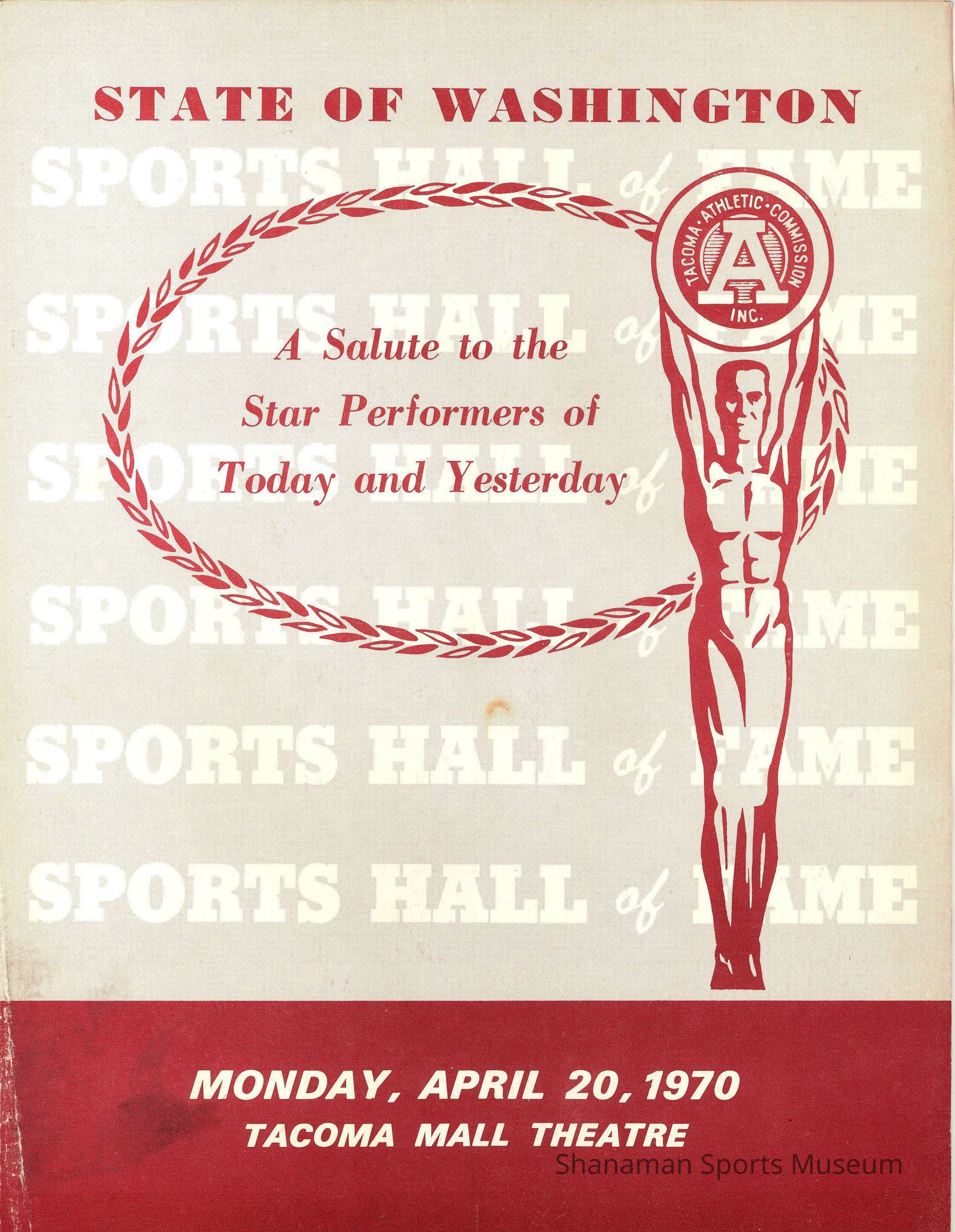 Program - "State of Washington - Sports Hall of Fame. Ap. 20, 1970 at Tacoma Mall Theatre. Cover is pink and red; 2 copies