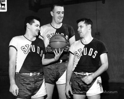 The O'Brien twins, John (left) and Eddie (right) with Bill Houbreg posing for a photo in the Cheney Studs uniforms. The O'Brien brothers were two of the more prominent players for the Cheney Studs. Houbreg was an All-American with the University of Washington men's basketball team. Many of the former players of the Cheney Studs became some of the most prominent officials and coaches in Washington state history.