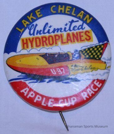 Button, "Lake Chelan Apple Cup Race - Unlimited Hydroplanes". Yellow and red hydroplane, "Miss Chelan races across waterLexicon