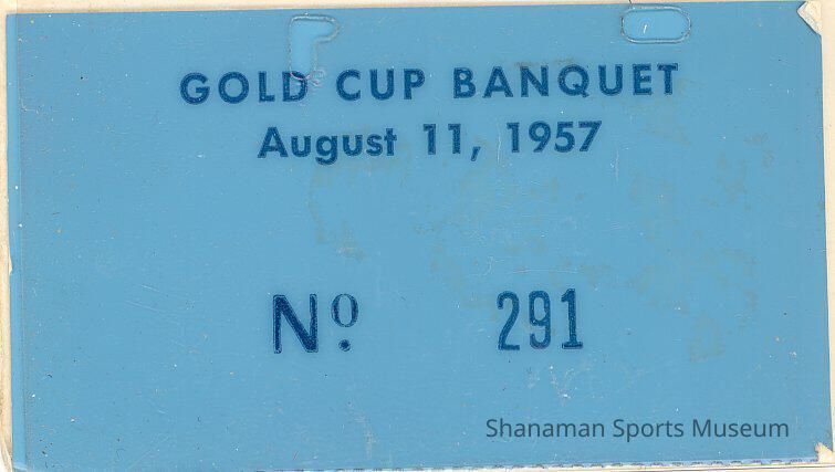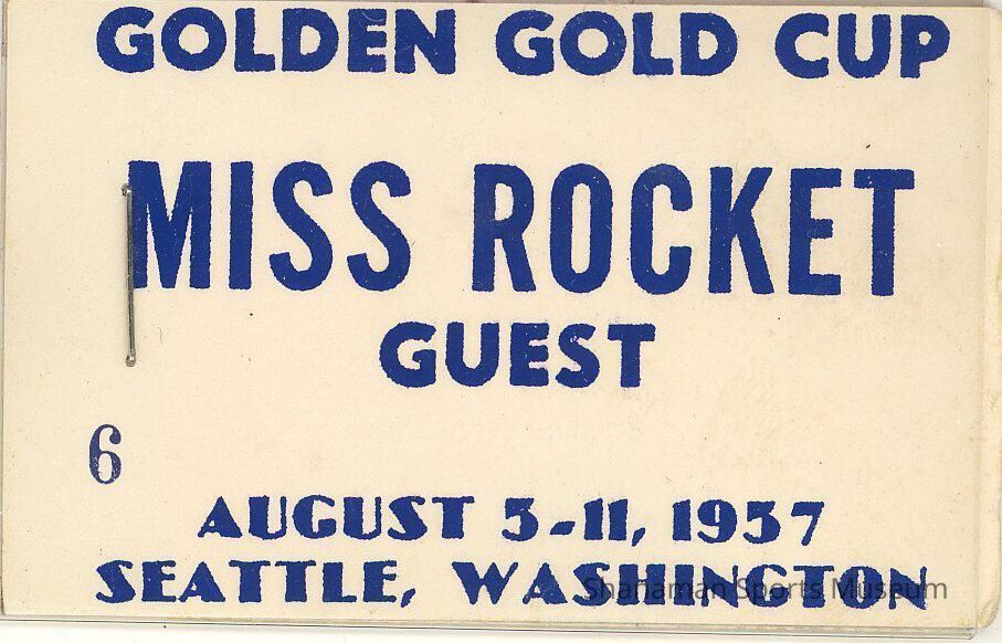 Guest pass - "Golden Gold Cup - Miss Rocket Guest", Aug 1957. White card, #6 printed in lower left; on backside "Gold cup Banquet, No. 291"Lexicon
