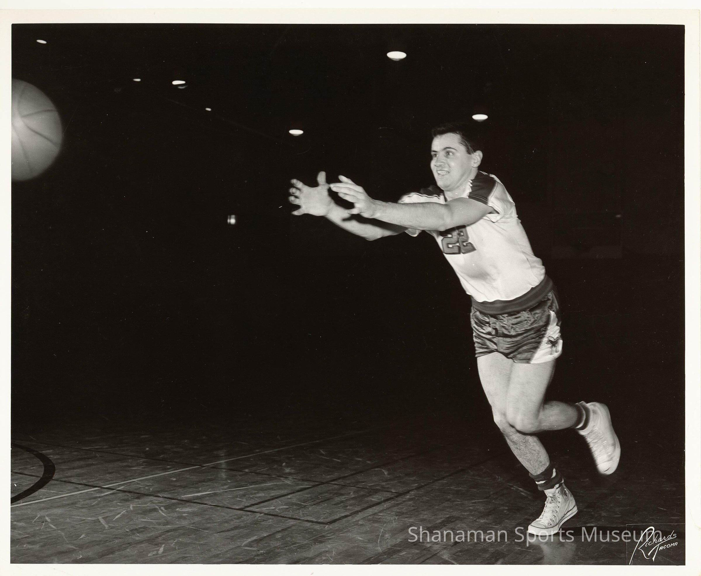 Cheney Studs #22 John O'Brien completes a pass. John, along with his twin brother Ed, were two of the top players on the Studs late 1950s teams. Both the O'Briens and other former Cheney Studs players went on to have productive coaching and refereeing careers in the state of Washington. The Cheney Studs were created by Tacoma legend Ben Cheney in an attempt to create a competitive AAU basketball team.Lexicon