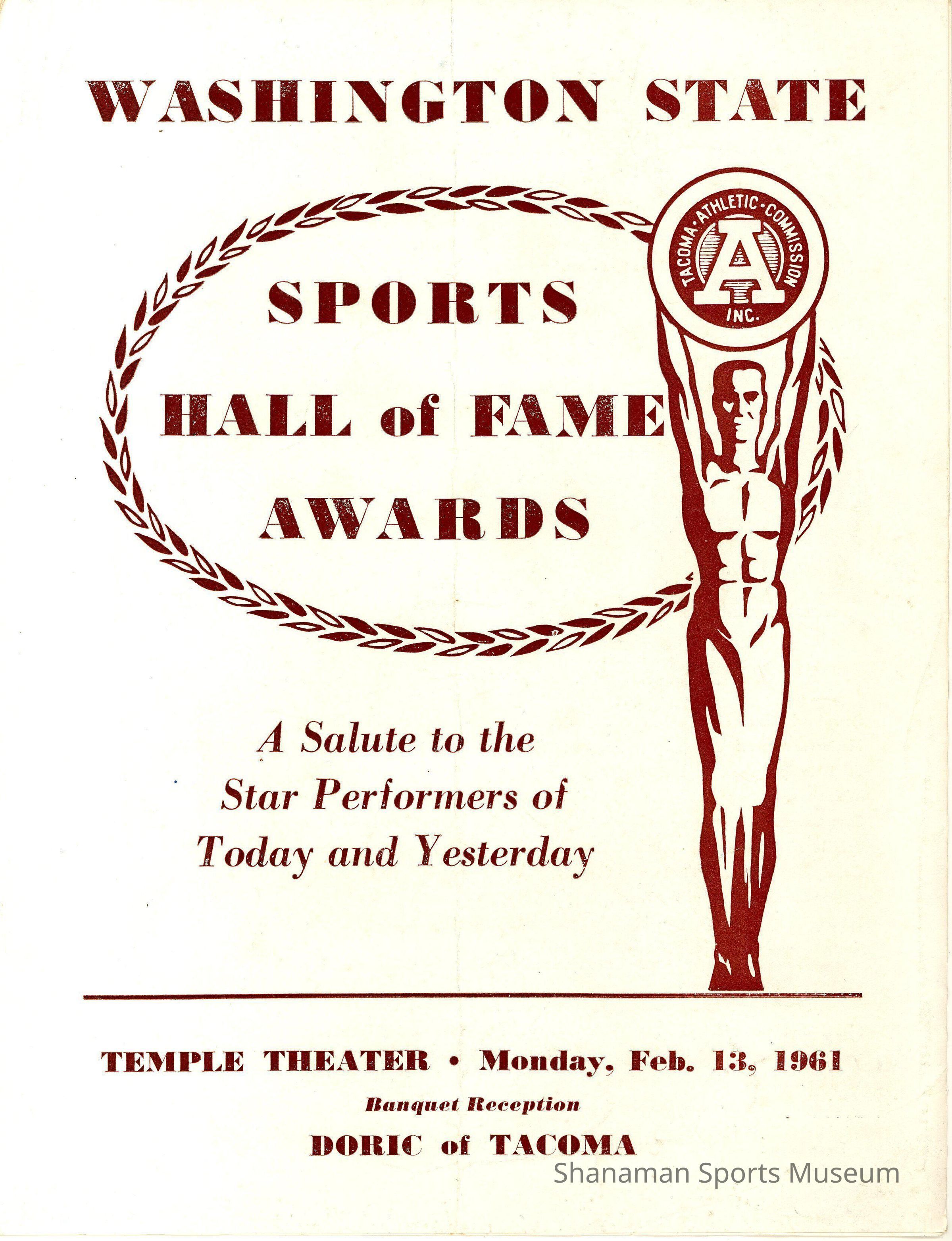 Washington State Sports Hall of Fame Awards program, 1961. Bi-fold; Dan Walton and Clay Huntington, co-chairs.Lexicon