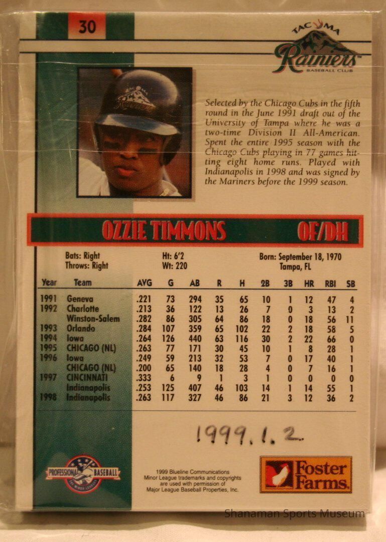 Tacoma Rainiers baseball cards, 1999. Complete set of Tacoma Rainiers 1999 cards, sealed. Manufacturer: Blueline CommunicationsLexicon