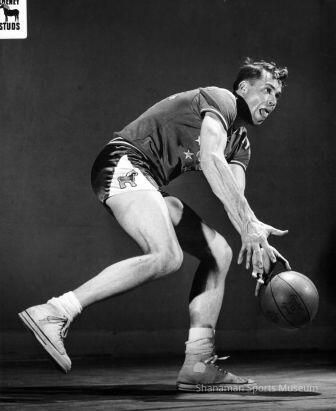 Dan Inveen receiving a pass for a photo shoot in his Cheney Studs AAU basketball team pictures. Inveen was one of the many former Stud players who became some of the most influential figures who went on to become a referee or coach in Washington state history. Inveen spent time refereeing then Pac-10 football as well as the athletic director of the Tacoma School District.Lexicon
