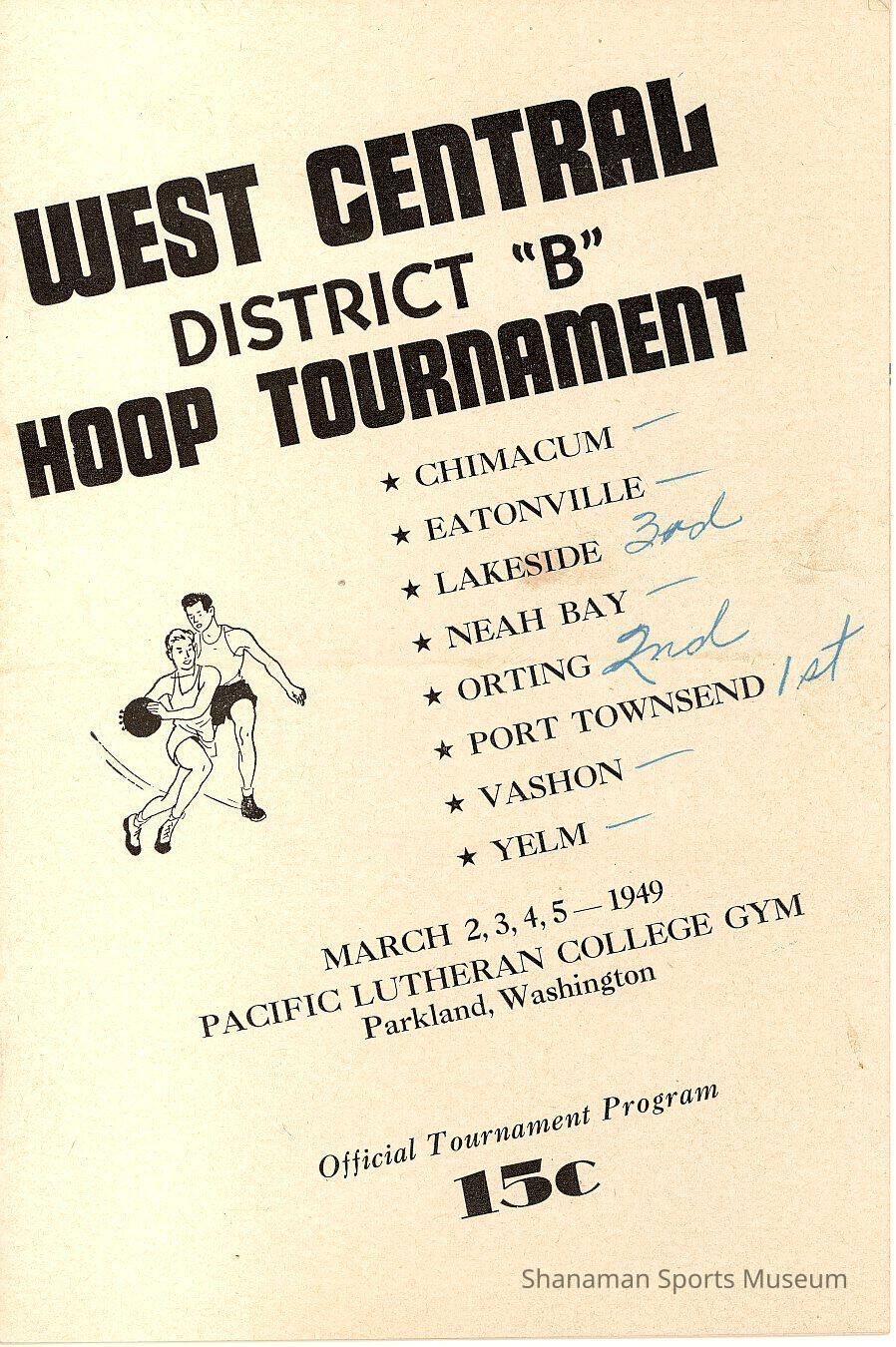 West Central District "B" Hoop Tournment program. March 2-5, 1949. Parkland, WA