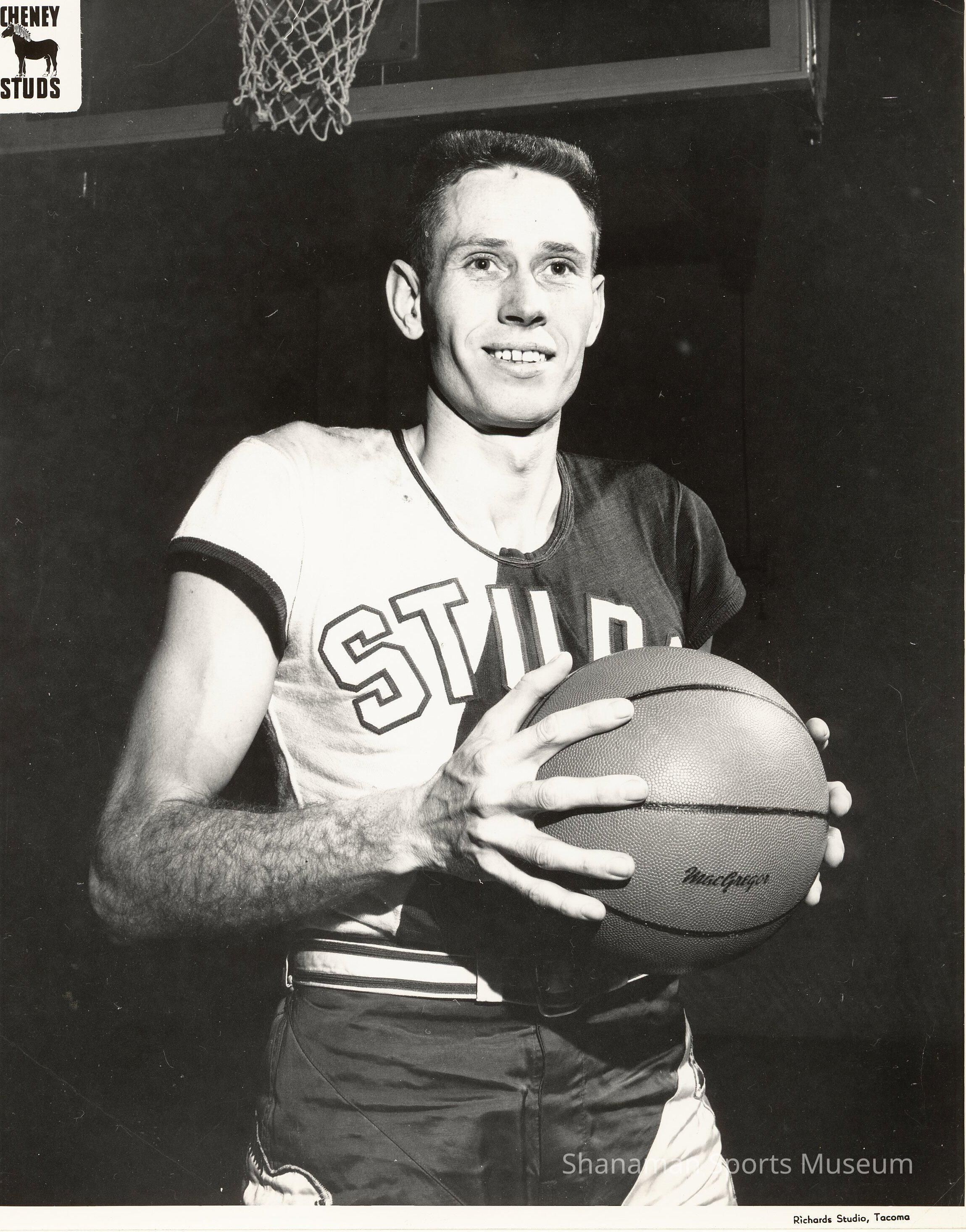 Photograph of Jerry Vermillion of the Cheney Studs. Tacoma legend Ben Cheney created the Cheney Studs AAU basketball team as a way to showcase some of the nations top collegiate athletes in a competitive setting during their off-seasons. Many of the former players and coaches went on to become some of the most influential coaches and officials in Washington state history.Lexicon