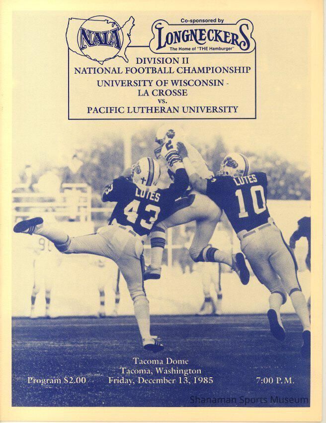 Division II National Football Championship - University of Wisconsin - La Crosse vs.Pacific Lutheran University Tacoma Dome Dec 13, 1965Lexicon