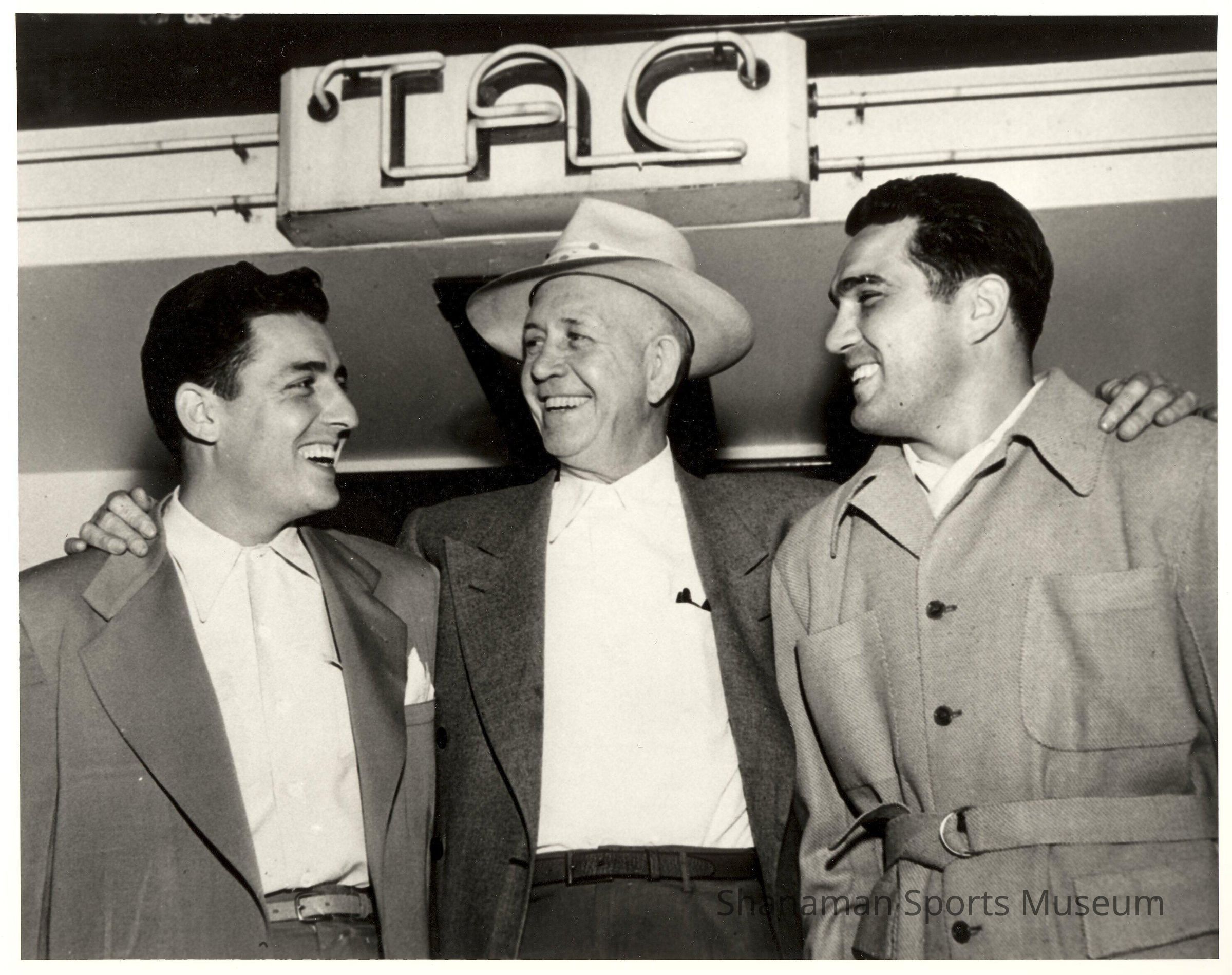 Rocky Marciano (right) stands under a Tacoma Athletic Commission sign with Jack Kearns (center). Kearns was a longtime boxing promoter. Kearns, who was born in 1882 and lived in the Northwest, managed Jack Dempsey, Mickey Walker, Joey Maxim and Archie Moore. Marciano was the world heavyweight champ for four years in the early 1950s.Lexicon