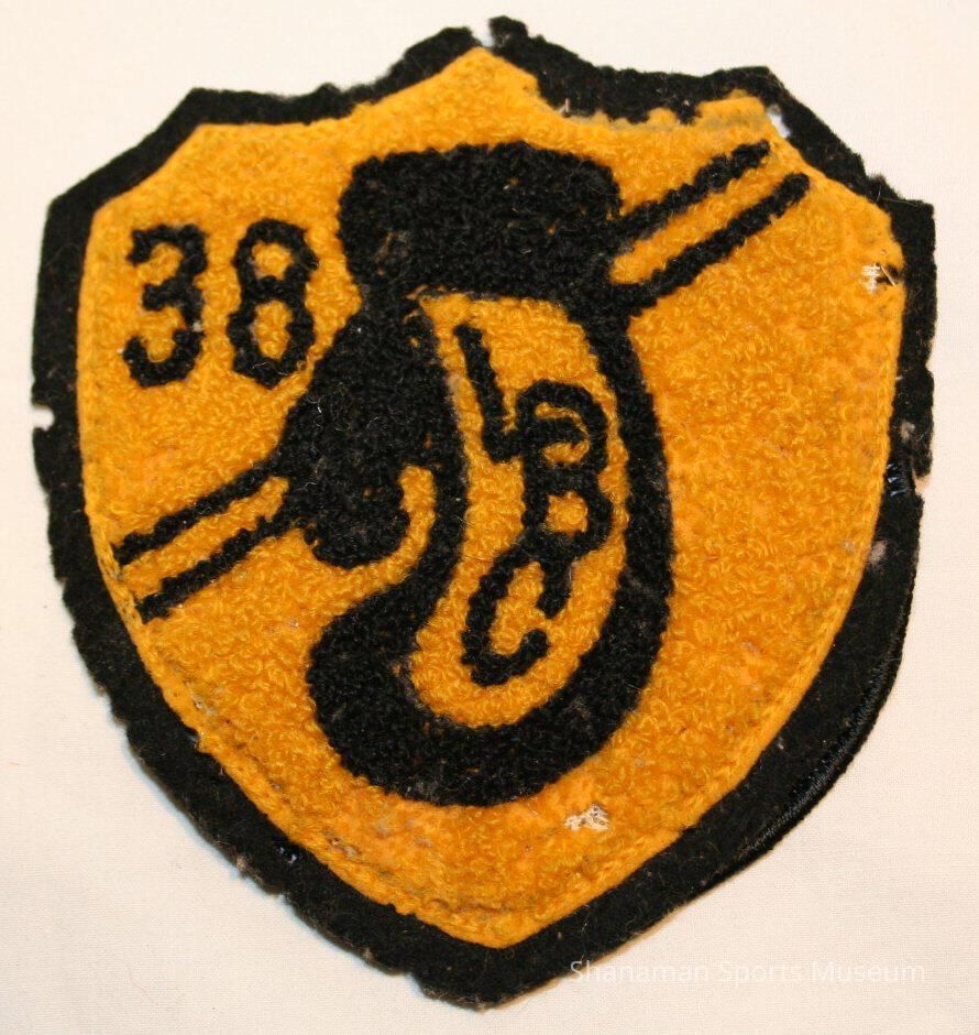 Patch, yellow on black felt, shield-shaped, "38" in upper left, boxing glove with "LBC" at center. Patch belonged to Jack Rosier, a relative (cousin?) of the donor, who was on the 1938 Lincoln High School boxing team.Lexicon