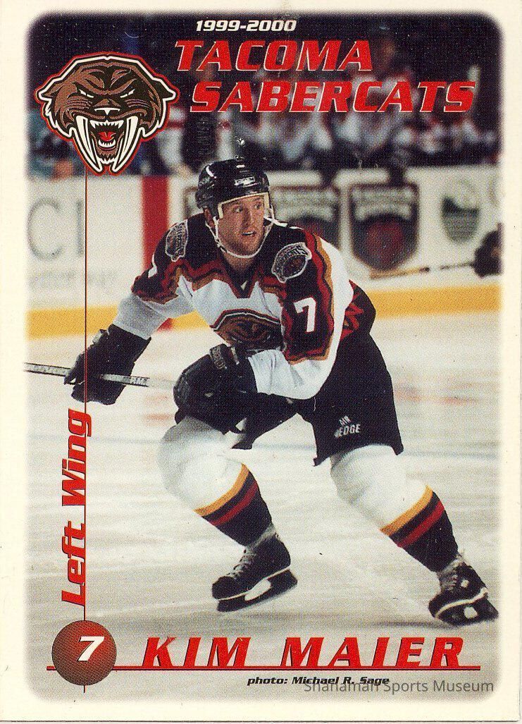 Magnet, replica of trading card for Kim Maier, Left Wing, 1999-2000 Tacoma Sabercats.Lexicon