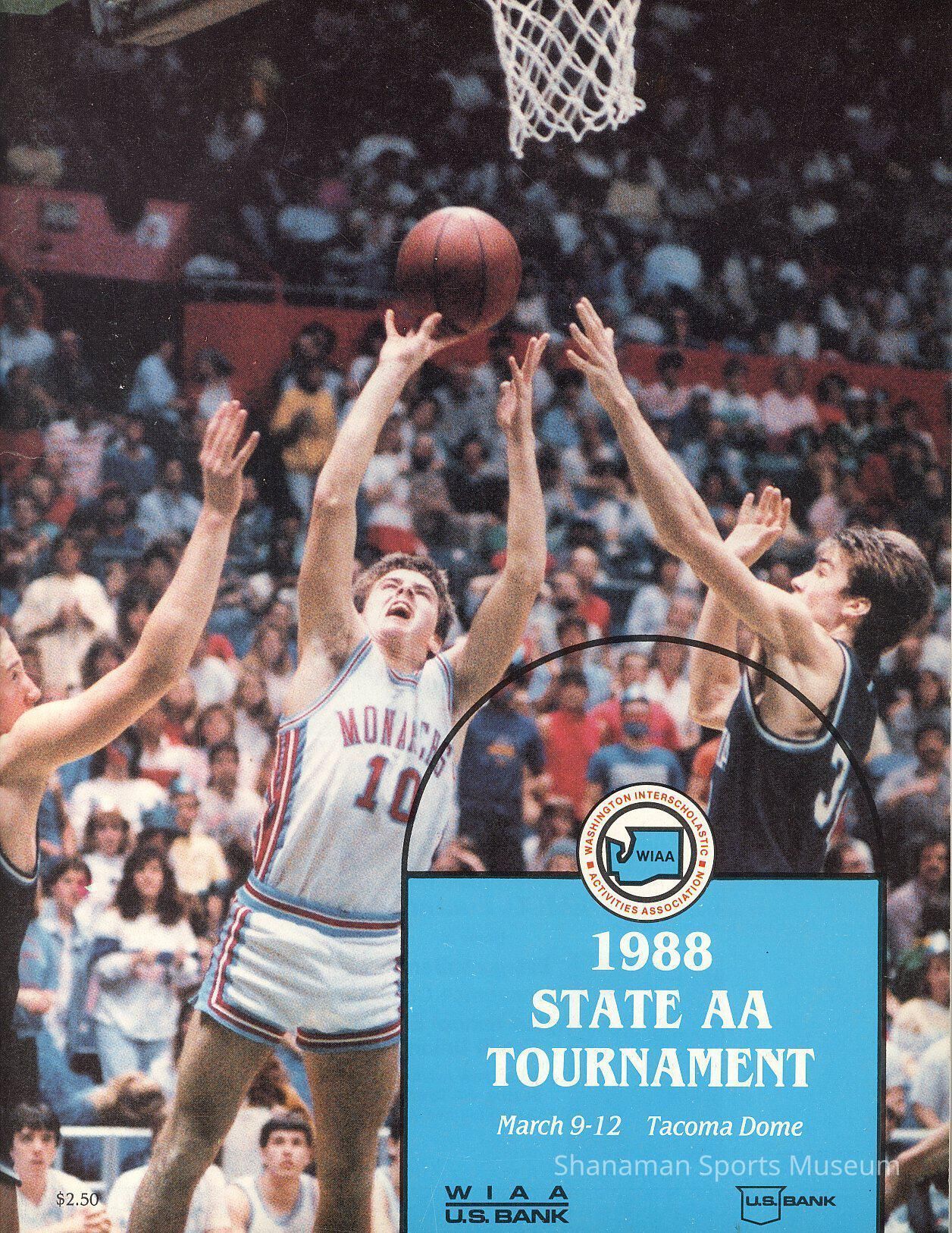 Program, 1988 State AA Tournament, March 9-12, Tacoma Dome. Double cover - girls in one half of program, boys in the other (basketball)Lexicon