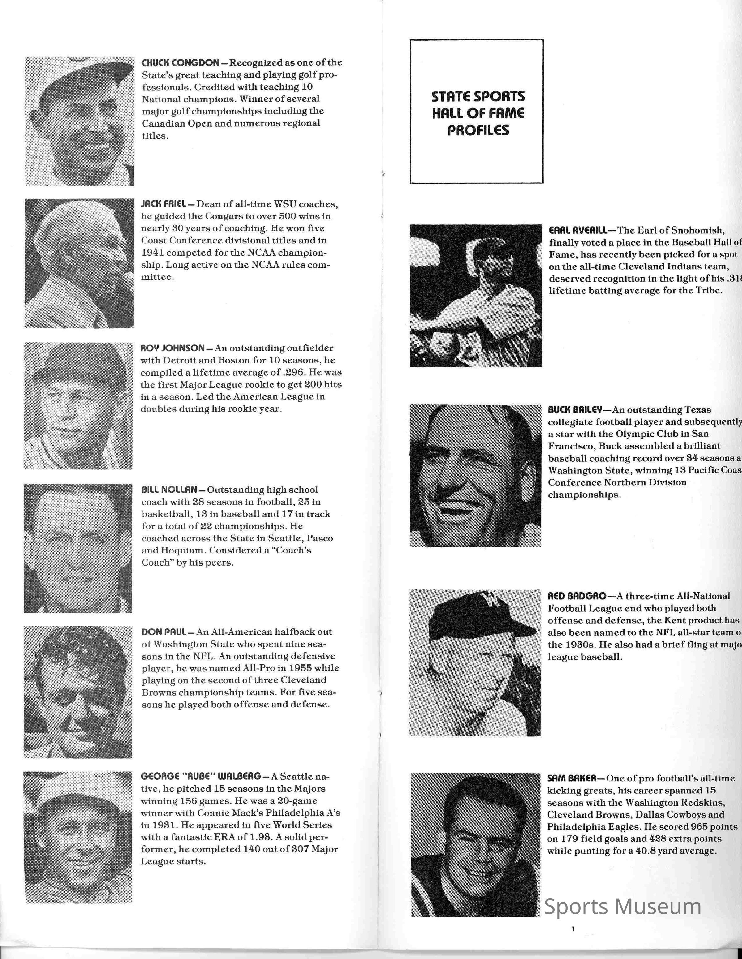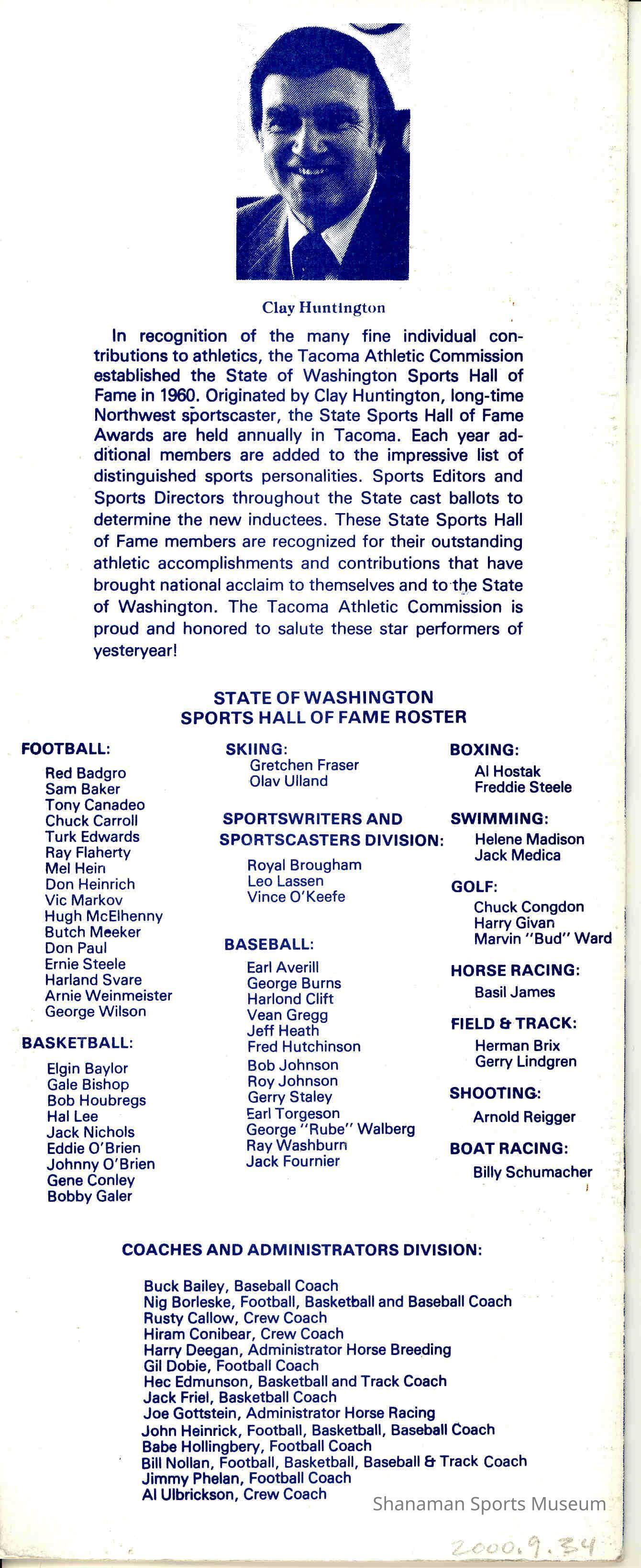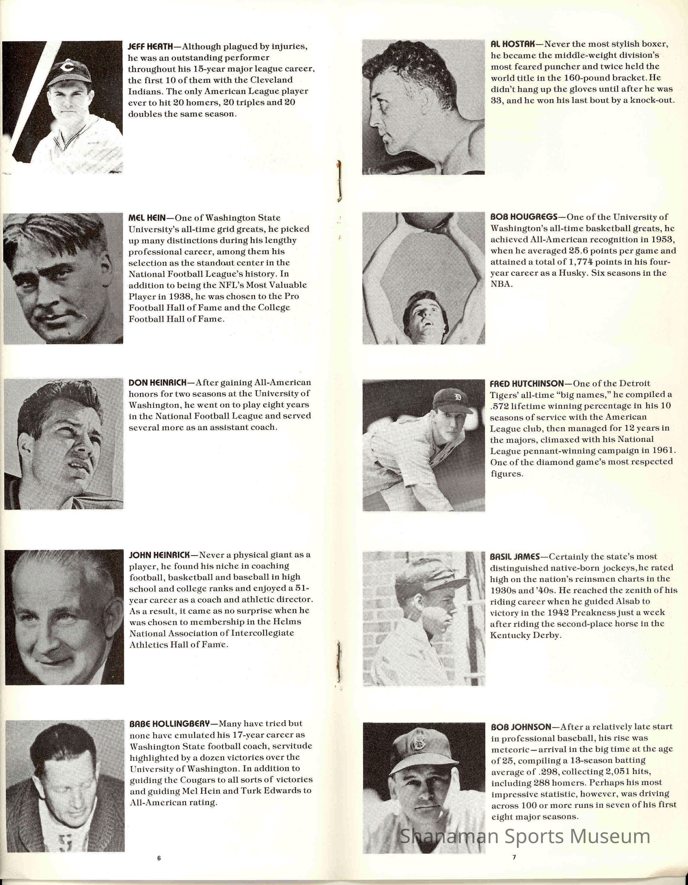 Pamphlet, State of Washington Sports Hall of Fame