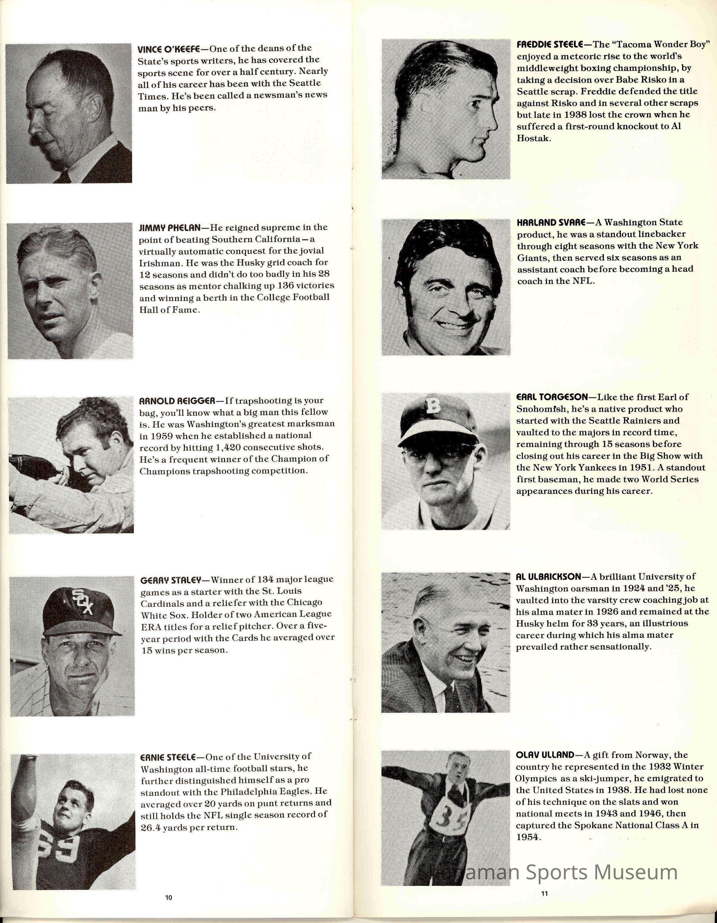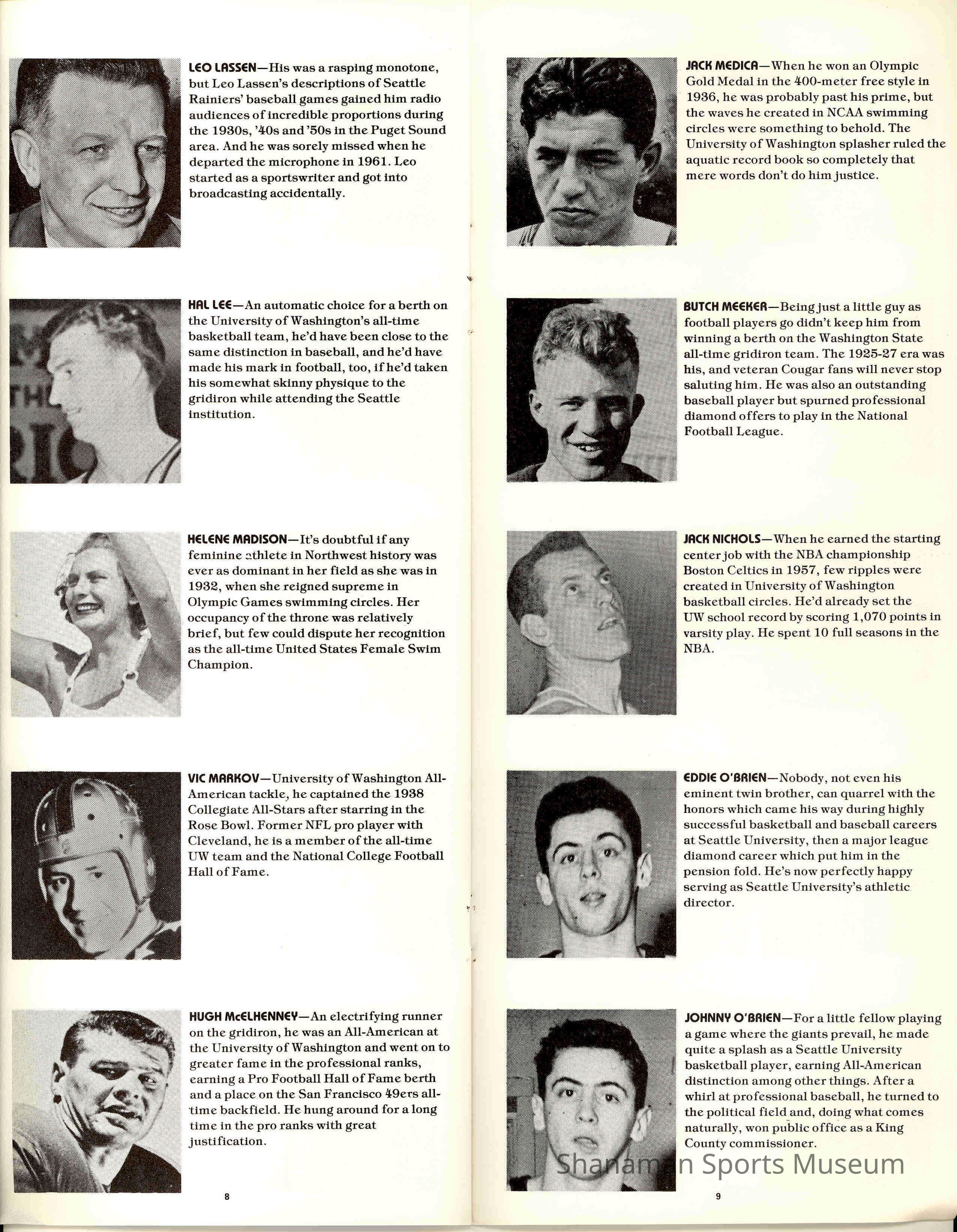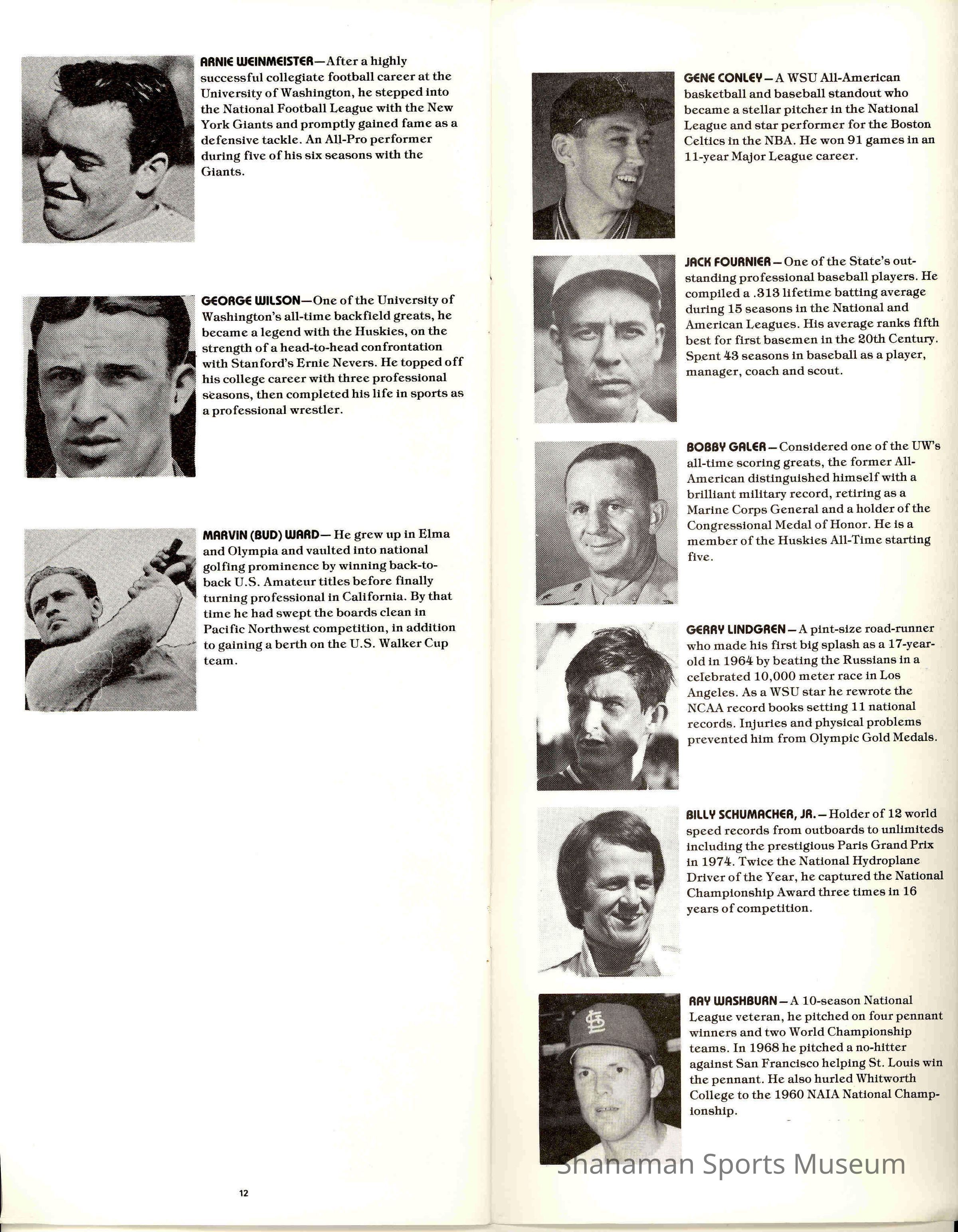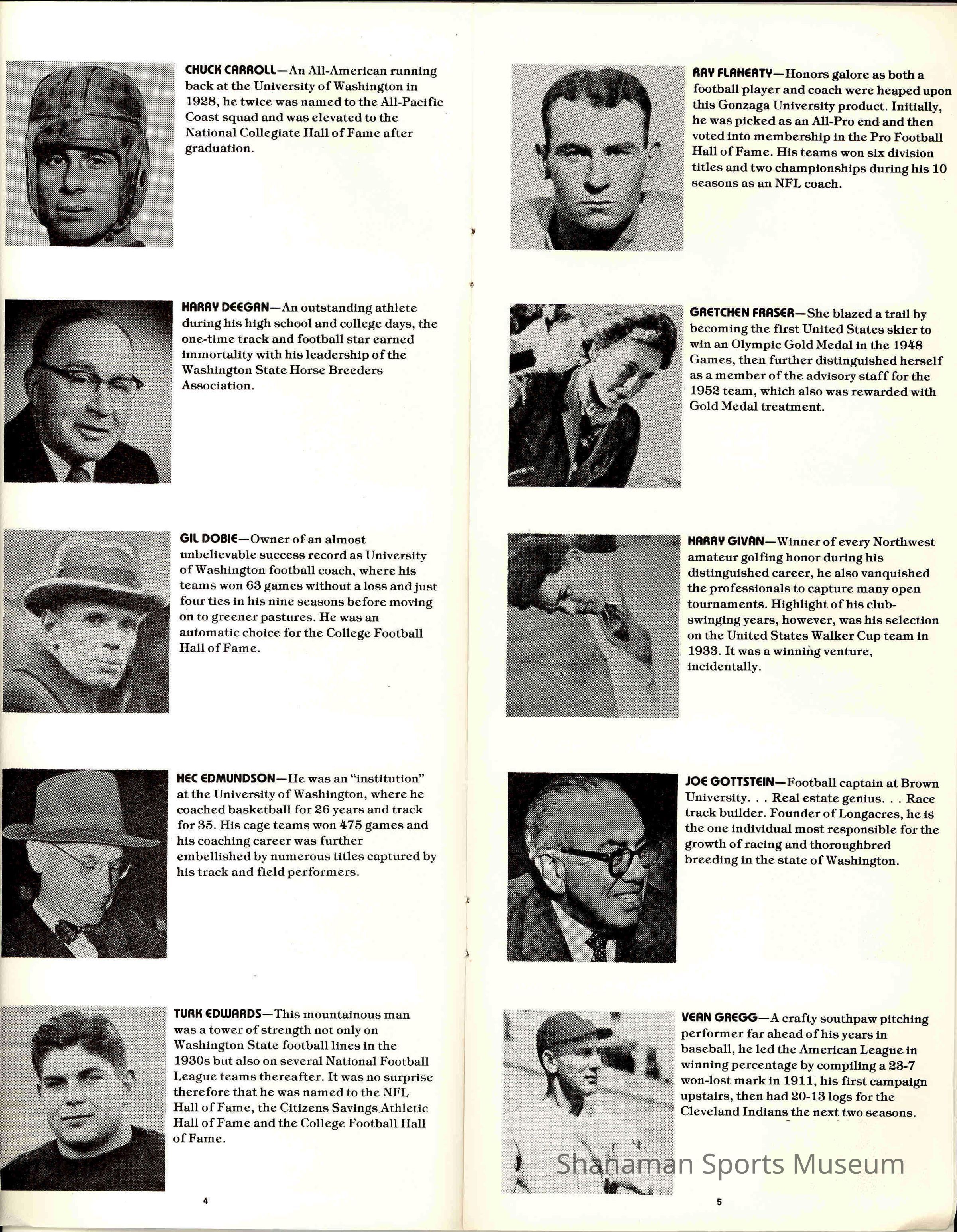 Pamphlet, State of Washington Sports Hall of Fame