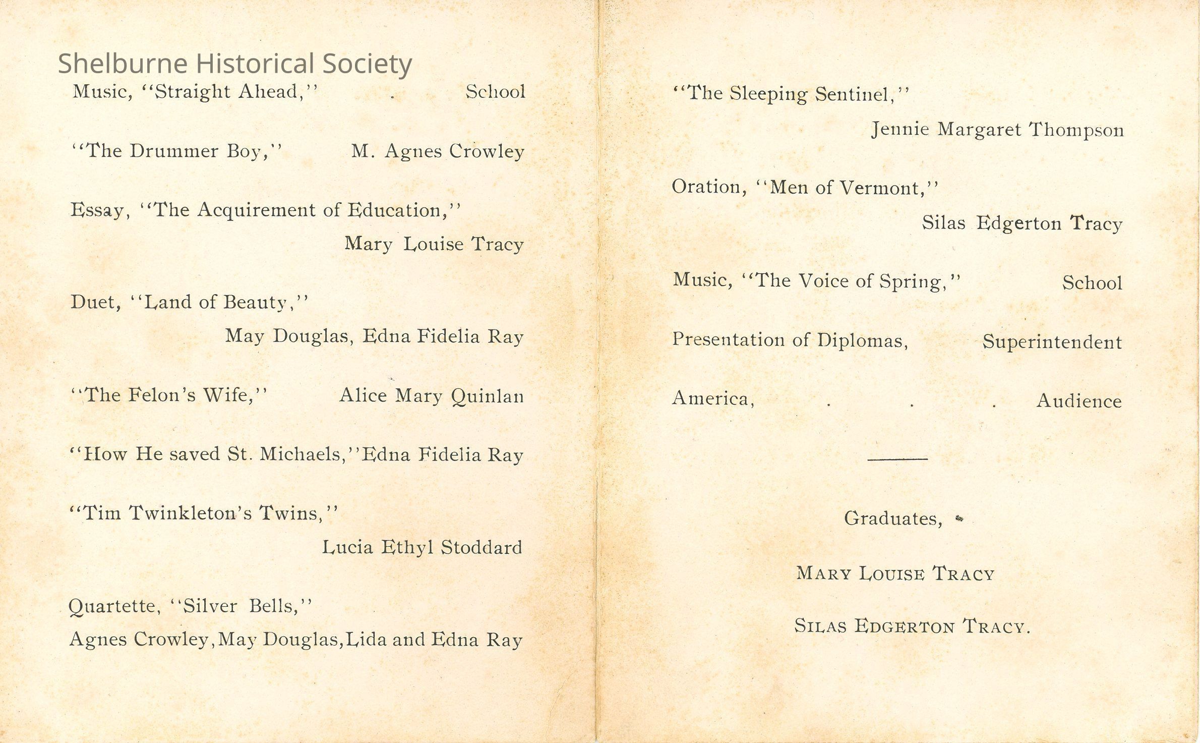 Graduation Exercises of the Shelburne High School Program 1899Entry/Object ID