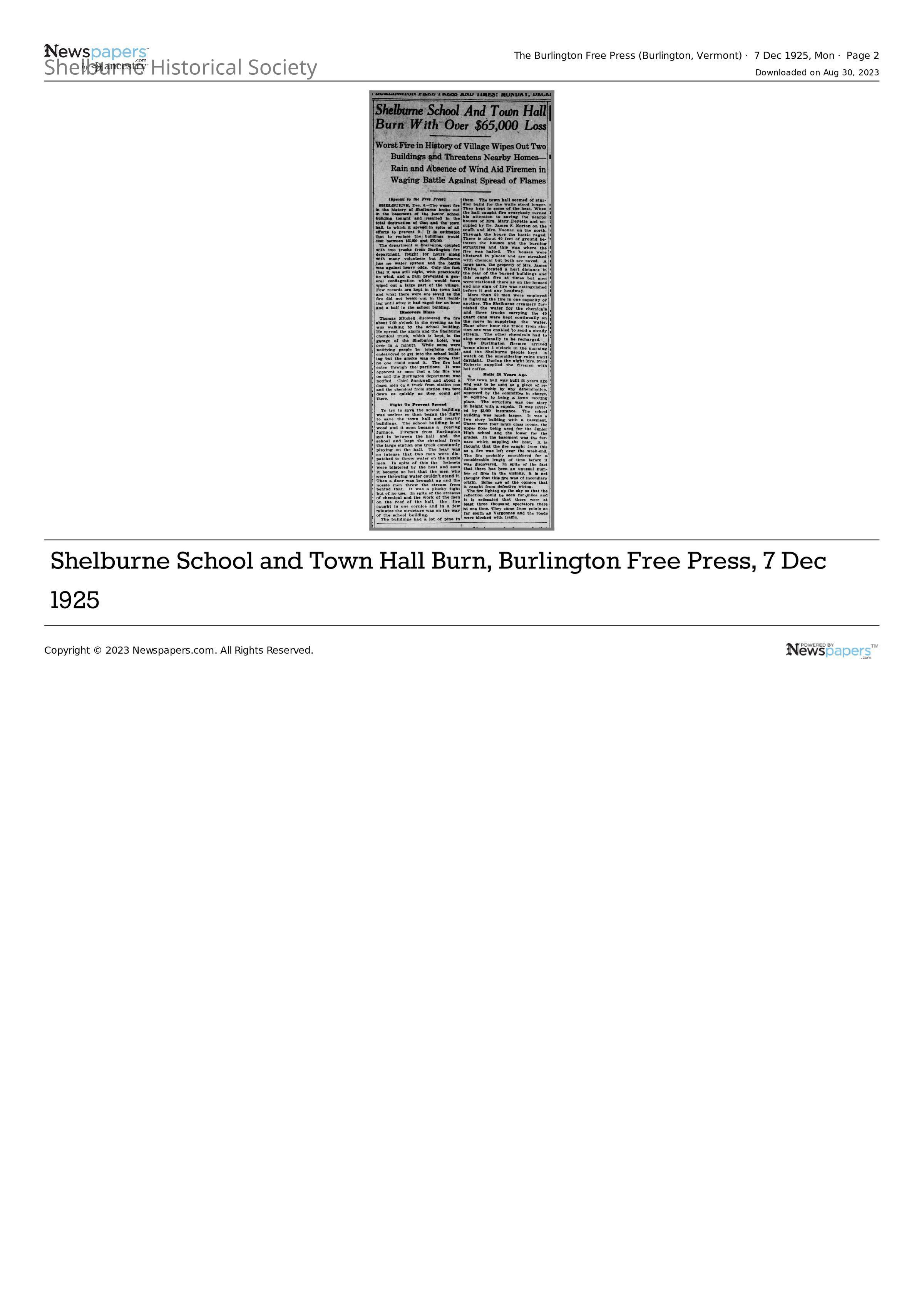Clipping Newspaper Digital - "Shelburne School and Town Hall Burn....."