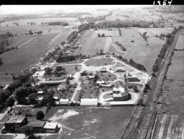 Unidentified photographer. Aerial View of Shelburne Museum, 1954. Gelatin silver print, 4 x 5 in.