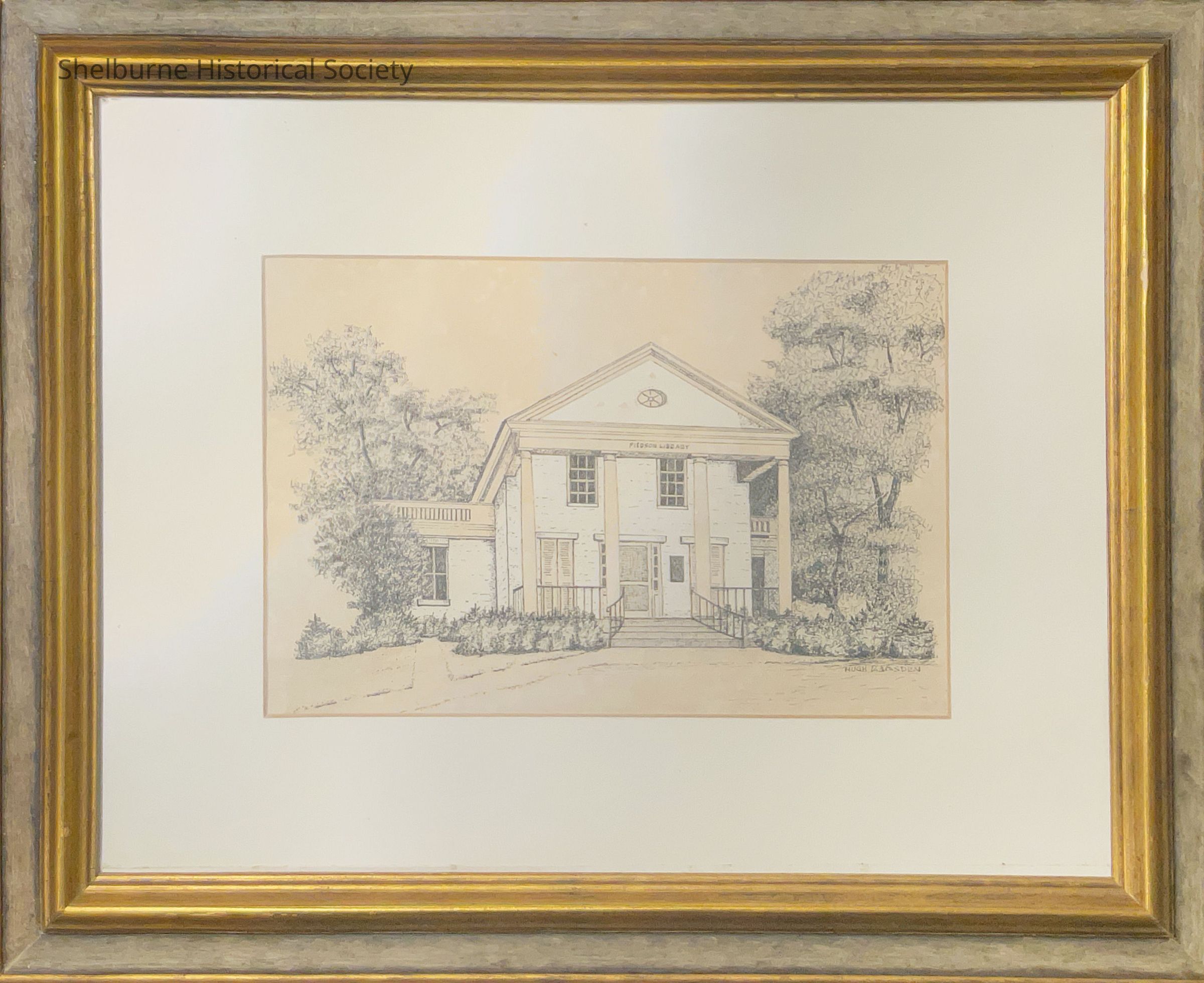 Ink drawing framed Hugh Ramsden Pierson Library Shelburne VermontEntry/Object ID